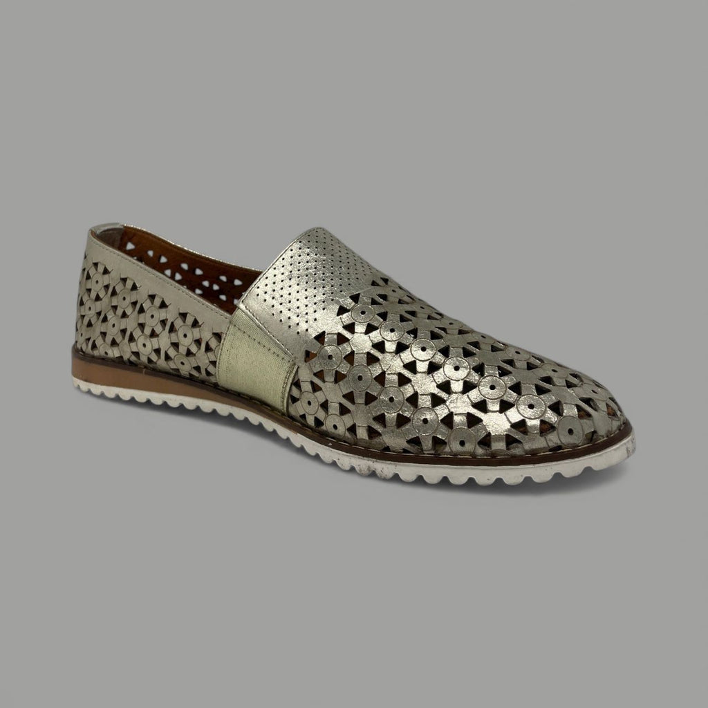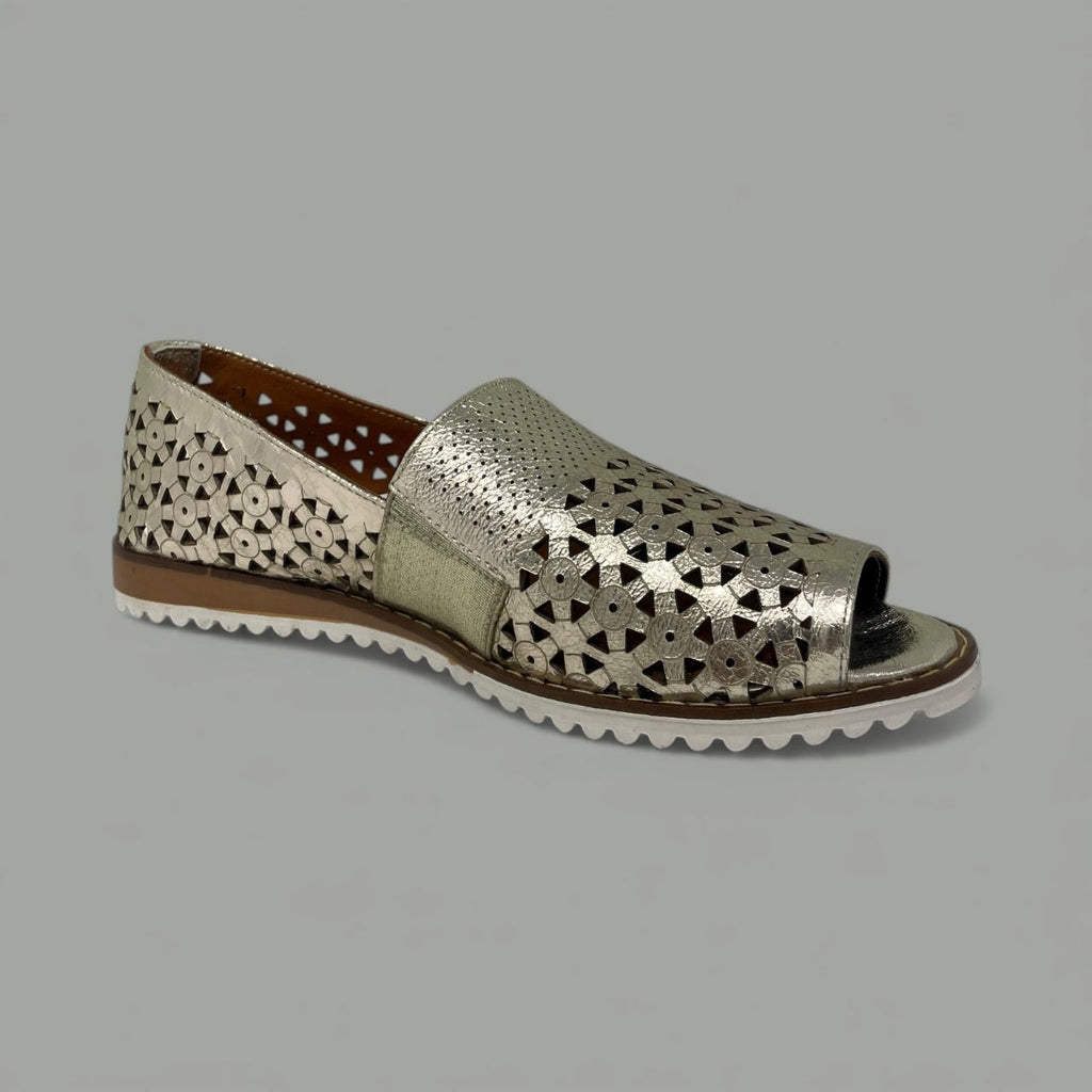 BONAVI - LOREN METALLIC LASER-CUT FLAT - SIZE 36 - CHAMPAGNE