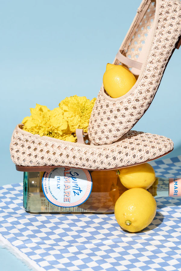 The Patricia Green Monaco Raffia Ballet Flat combines timeless elegance with natural charm. A raffia design with mesh underlay and an elastic strap for a secure fit. The elastic strap can also be worn under the foot!