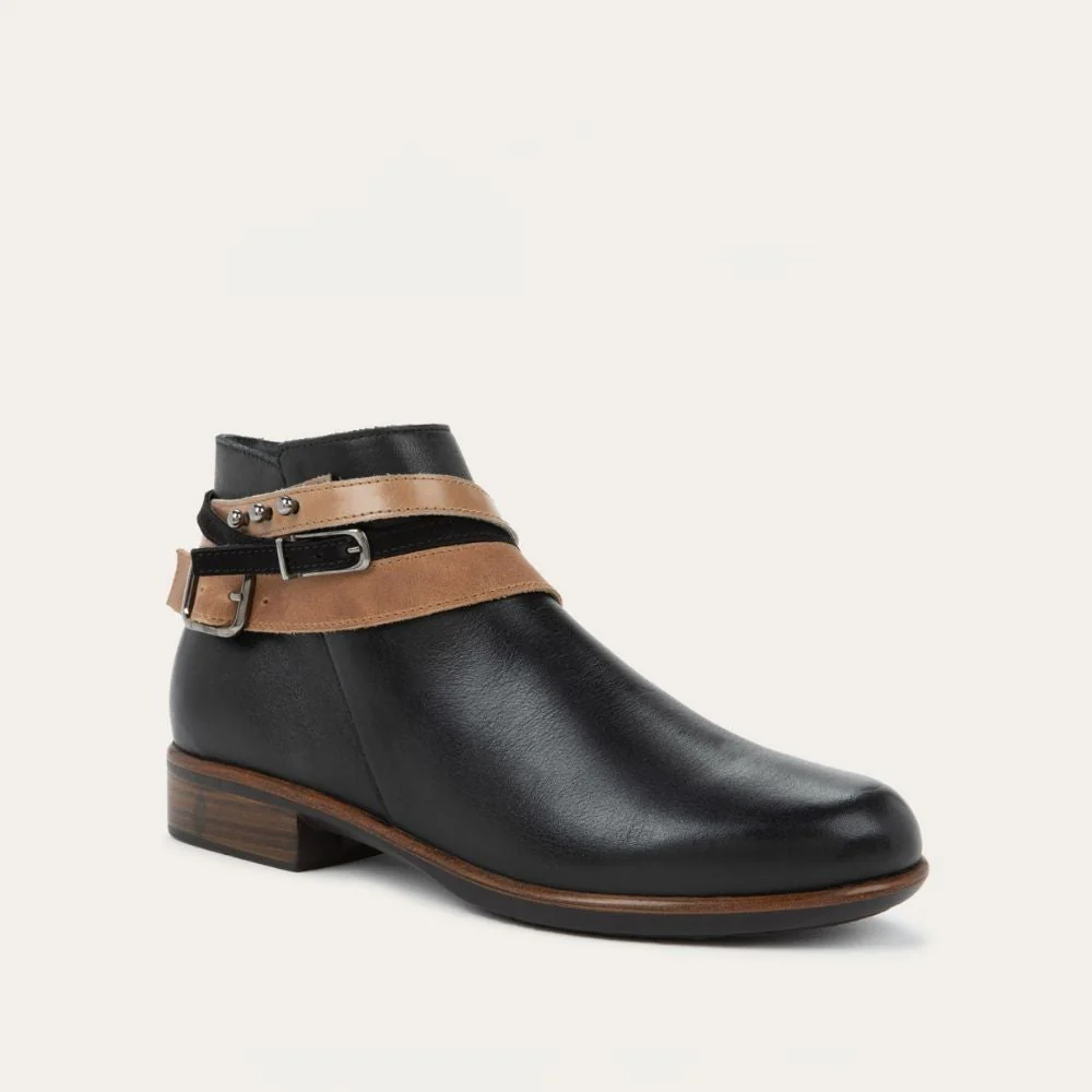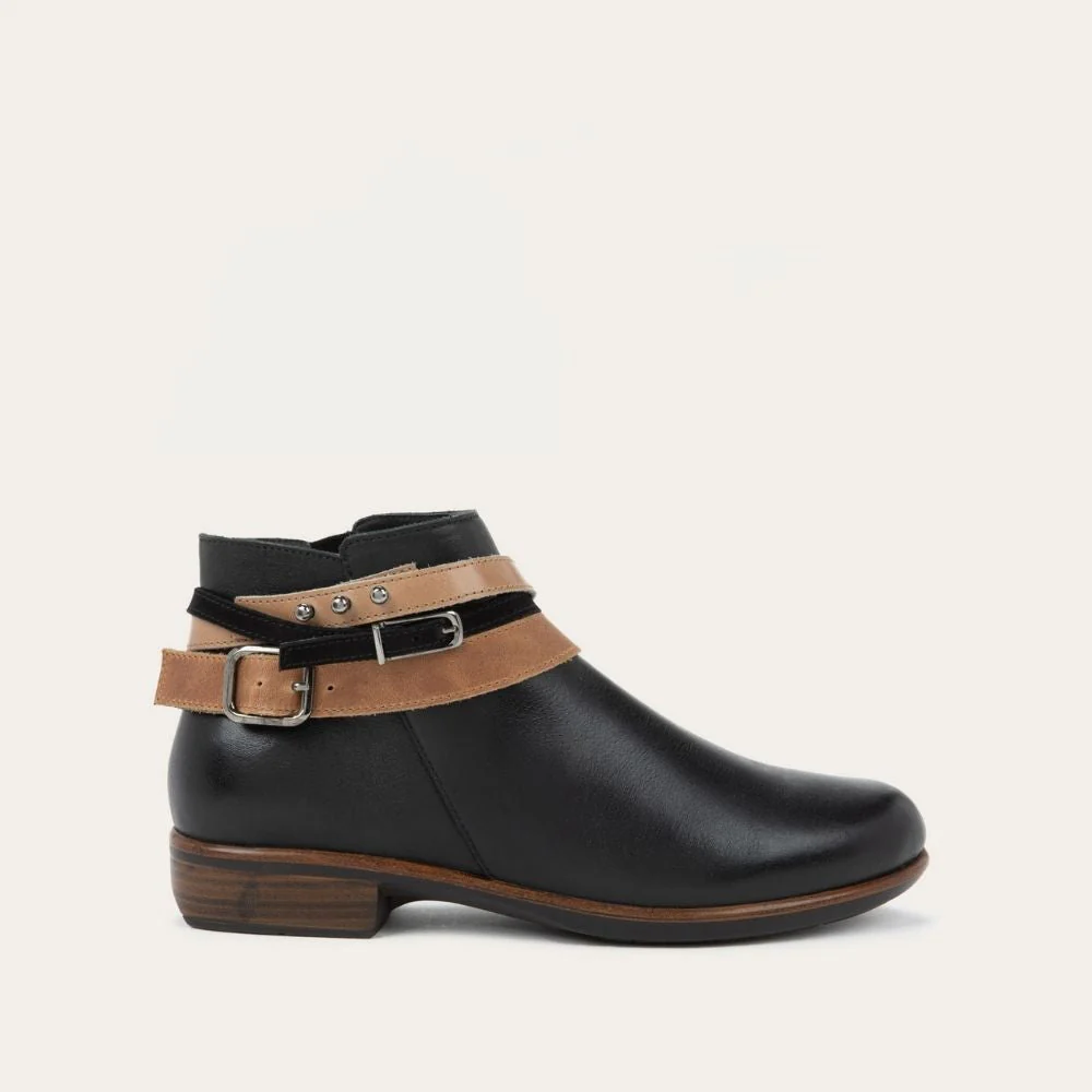 Step into bold style and unmatched comfort with the Sumatra Boot from our Aura Collection. Designed to make a statement, this boot features stacked buckle details and contrasting color accents, adding a touch of modern flair to its sleek, versatile design. The zipper closure ensures easy on-and-off wear, combining fashion and practicality effortlessly. Built for comfort, the 1.5" sole provides just the right amount of cushioning and support, while Naot’s removable footbed allows for a customizable fit that ensures all-day comfort. Whether you’re dressing up for a night out or pairing with your favorite casual outfit, the Sumatra Boot delivers both style and functionality. It is recommended that half sizes should size up.