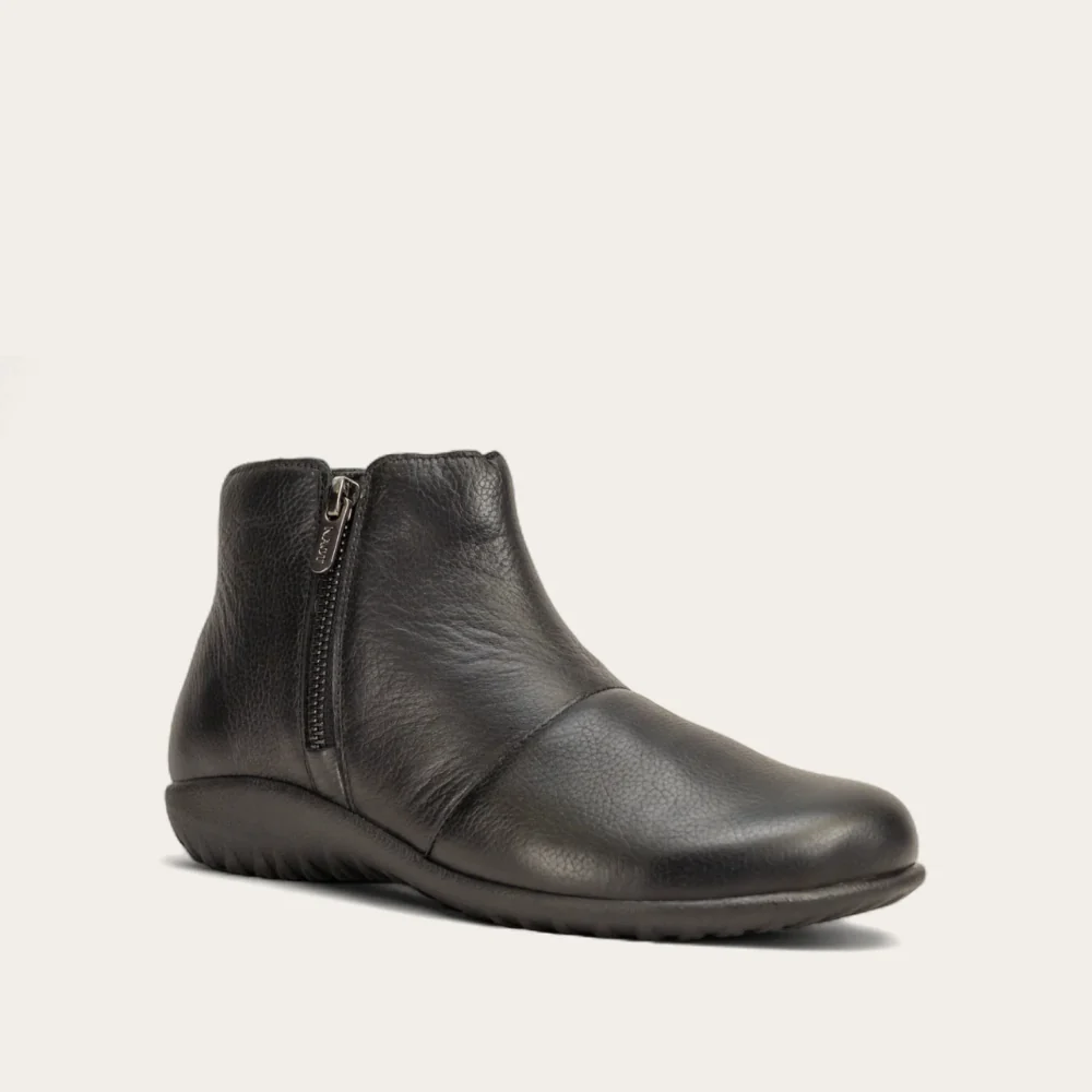 Introducing the Wanaka-your go-to stylish bootie designed for both comfort and convenience. With its double zippers, slipping into these beauties is a breeze. The Wanaka features a removable cork and latex footbed, ensuring customizable comfort tailored to your feet. Now the sole-a 1" polyurethane sole that's not only lightweight and durable but also slip-resistant, providing stability with every step This collection uses a hand-sewn Strobel construction making it strong and flexible. Plus, it's American Podiatric Medical Association (APMA) accepted for promoting good foot health. Our patented Naot Replacement Footbeds are available for the Wanaka, ensuring extended comfort and support.