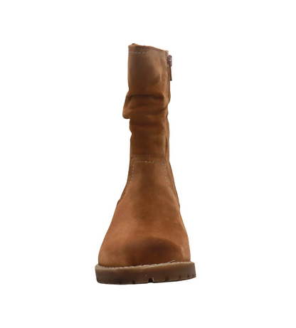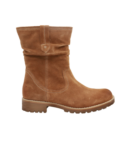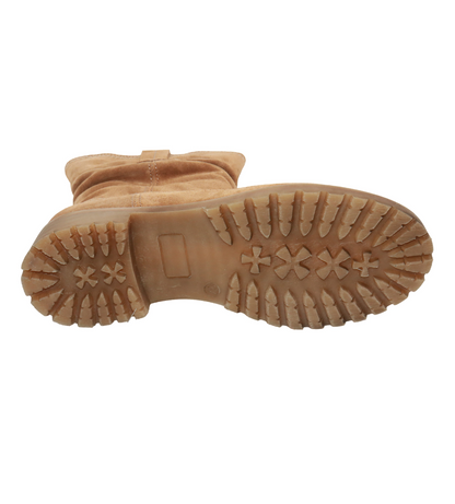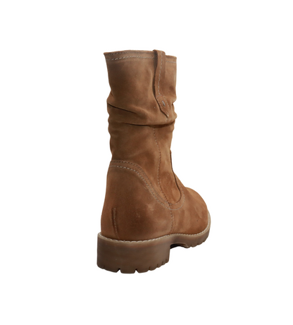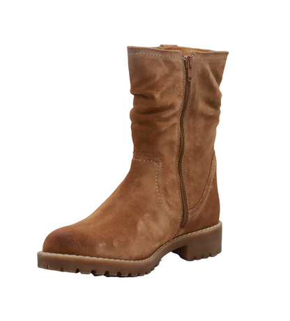 Handmade in Portugal, the Texas by Eric Michael blends rugged charm with everyday ease. Crafted from supple suede leather, this mid-height boot features a relaxed silhouette with subtle stitching and a soft, flexible shaft that moves naturally with every step. The contrast sole adds a modern touch while providing durability and traction for all-day wear.