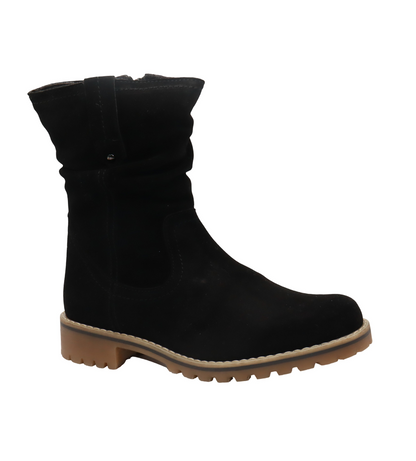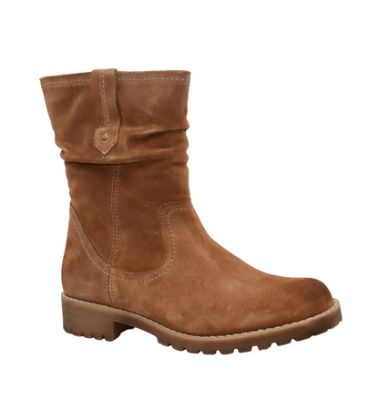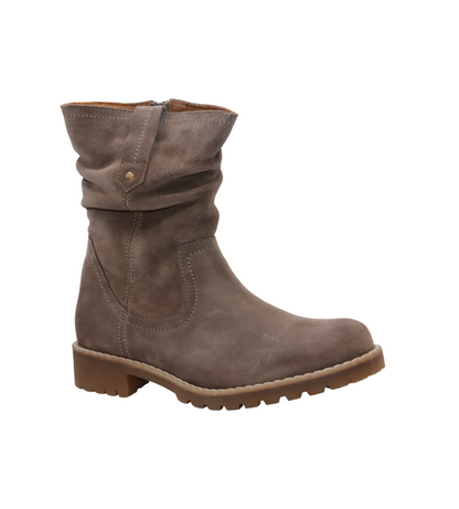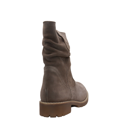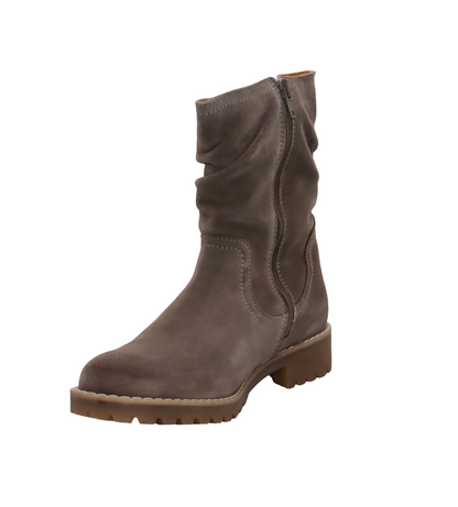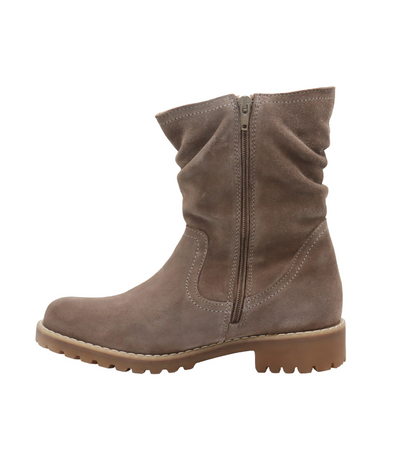 Handmade in Portugal, the Texas by Eric Michael blends rugged charm with everyday ease. Crafted from supple suede leather, this mid-height boot features a relaxed silhouette with subtle stitching and a soft, flexible shaft that moves naturally with every step. The contrast sole adds a modern touch while providing durability and traction for all-day wear.