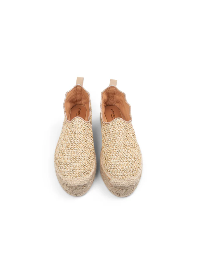 The Abigail features a beautifully scalloped edge detail, paired with a natural raffia upper that exudes effortless sophistication. Its jute-wrapped platform sole enhances both comfort and style, making this slip-on a versatile addition to your wardrobe. Designed with impeccable care, the raffia and materials used are hand-curated by artisans for superior fit, durability, and an unmistakable touch of luxury.