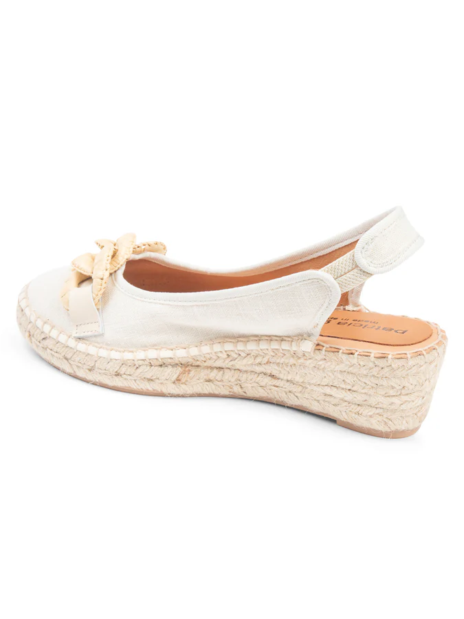 The Valencia Espadrille returns with a charming new update—a tonal raffia buckle that adds playful texture and whimsical personality to this beloved silhouette. The soft textile upper, cushioned footbed, and adjustable slingback strap ensure a comfortable, secure fit, while the handwoven jute wedge offers flattering, lightweight lift. Feminine, fun, and effortlessly chic, Valencia embodies Patricia Green’s signature blend of refined craftsmanship and joyful design. A fresh warm-weather favorite with irresistible charm.