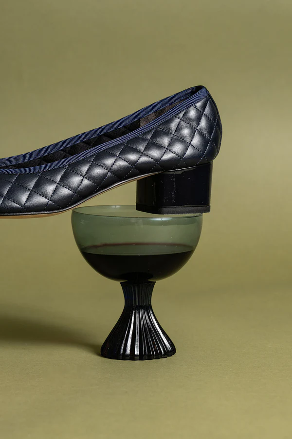 Elevate your favorite look in the Titou quilted nappa block heeled pump. A dainty bow and fully functional cord finishes this shoe for the perfect fit. Quilted nappa upper with contrasting patent leather toe laquered chunky heel.