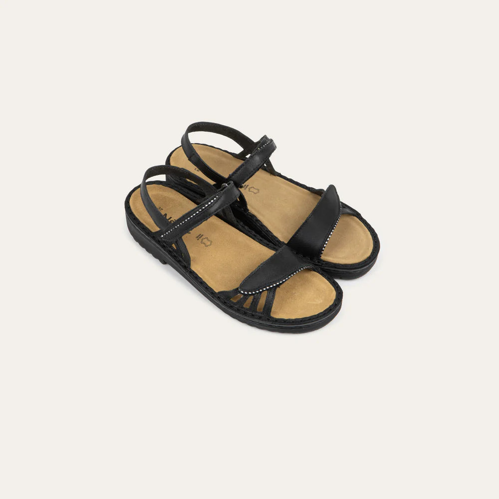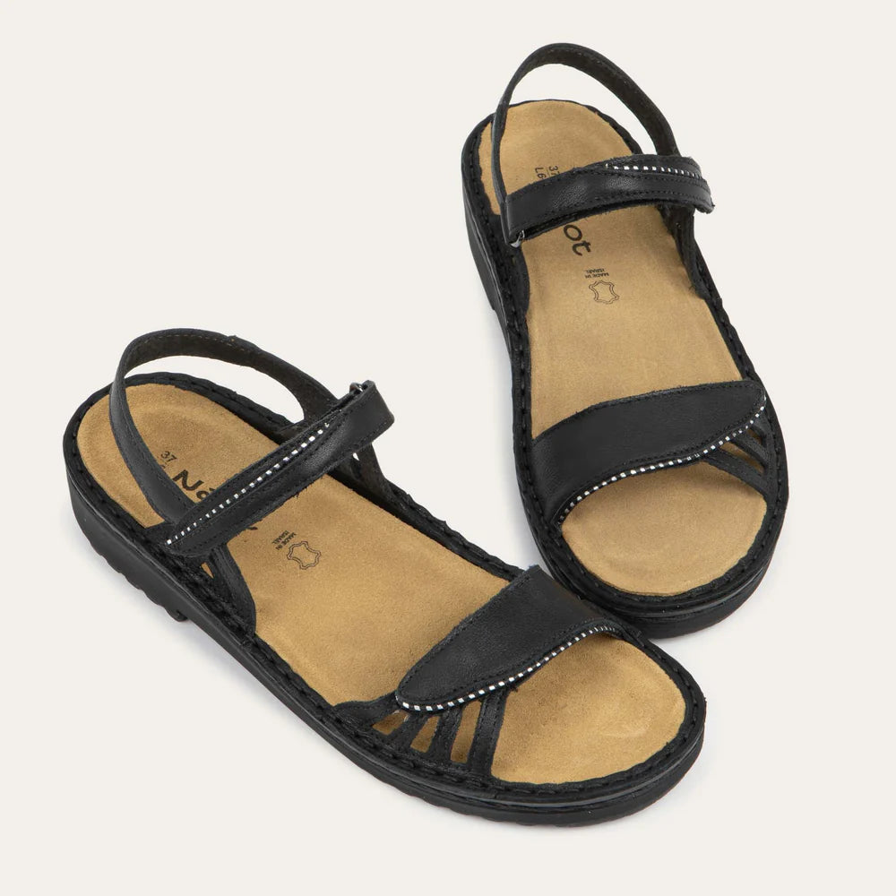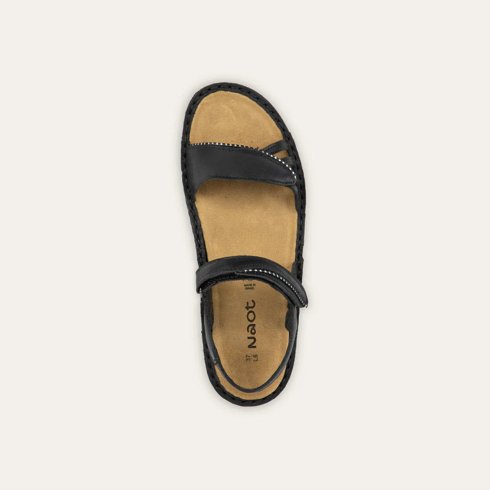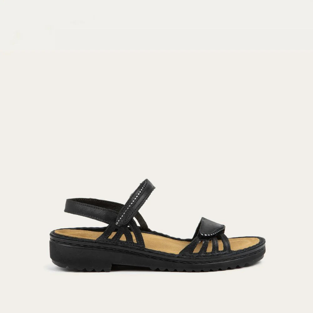 The Anika Sandal from Naot’s Low Scandinavian Collection brings sleek and supportive design to your everyday comfort. Featuring two adjustable hook-and-loop straps, Anika offers a secure, customized fit, while zipper-like detailing along the edges adds a subtle, modern accent. Crafted with Naot’s renowned removable, anatomic cork and latex footbed, wrapped in soft suede, Anika provides exceptional cushioning that molds to the contours of your foot with wear. The Low Scandinavian Collection features a 1.25" polyurethane sole.