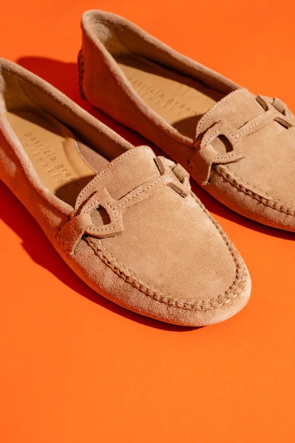 Rich, supple suede creates a flexible and ultra-comfortable hand stitched driving moccasin. A suede tonal horse bit detail with contrast stitching for a luxe finish.