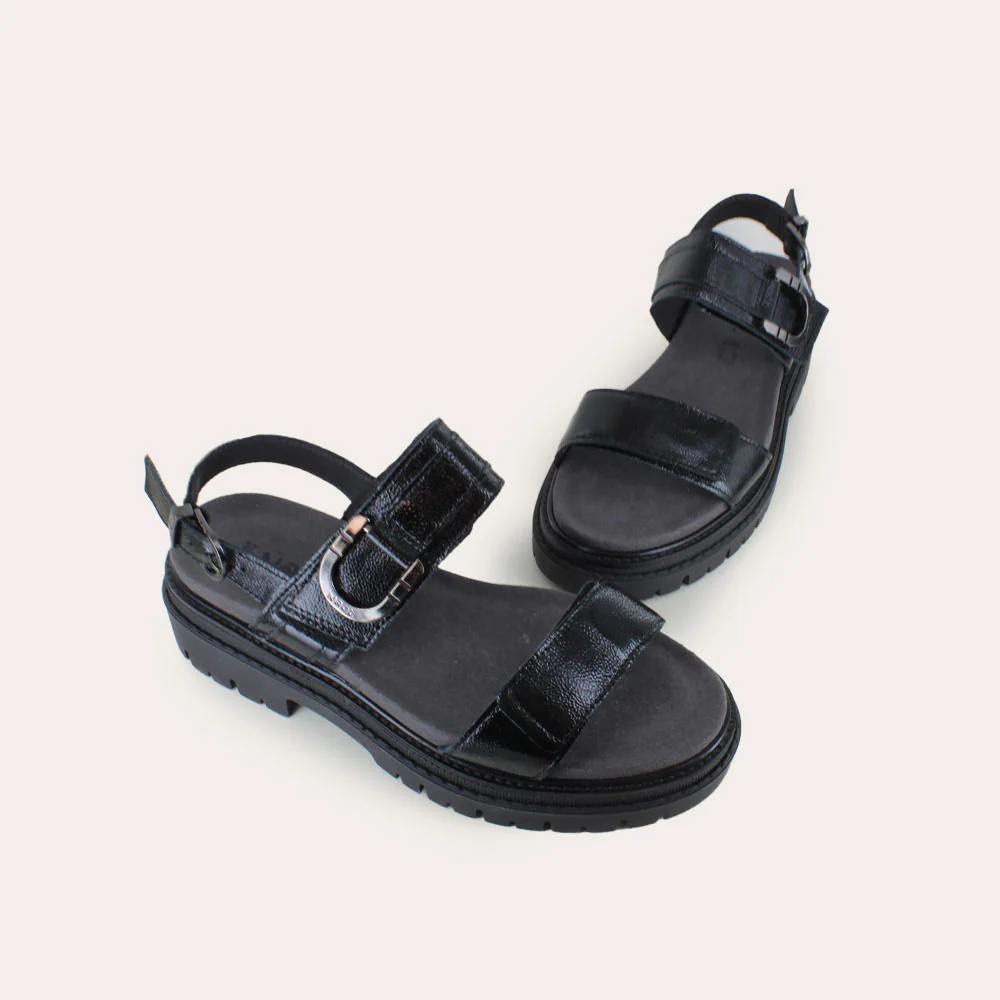 Introducing Trinity - where rugged elegance meets superior comfort. Featuring a buckle backstrap and hook and loop straps for a customizable fit, this sandal is adorned with striking metal ornamentation. The lug sole ensures durability and traction, making it the perfect blend of bold style and practical function. Crafted with Naot's anatomic cork and latex footbed wrapped in pampering suede and molds to the shape of your foot with wear, ensuring personalized comfort. The Downtown Collection's 1.5" rubber sole offers both style and stability.