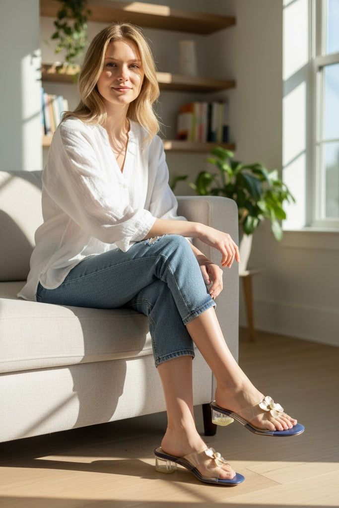 The stable, transparent block heel provides comfortable height and a unique, light-as-air look, making this shoe perfect for daytime events, resort wear, or a sophisticated evening out. The cushioned insole ensures lasting comfort, pairing femininity with practical wearability.