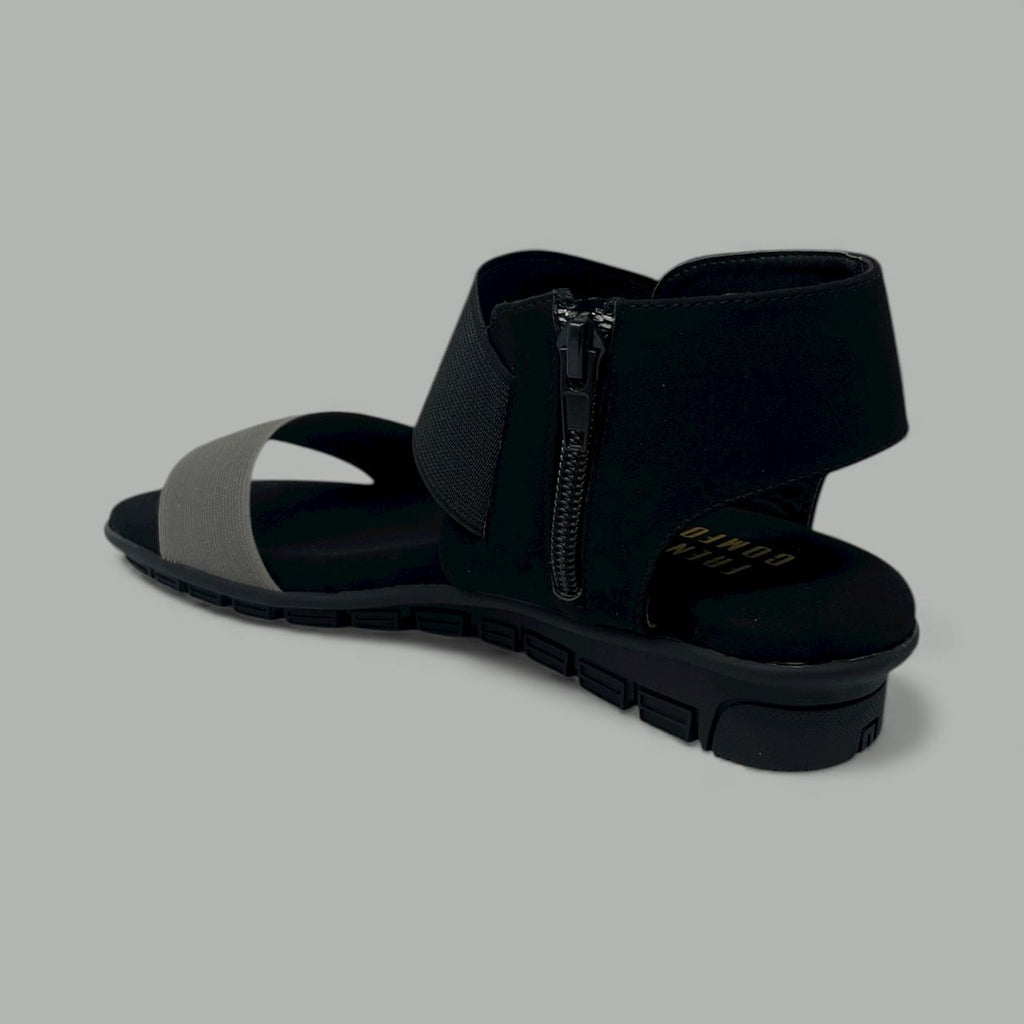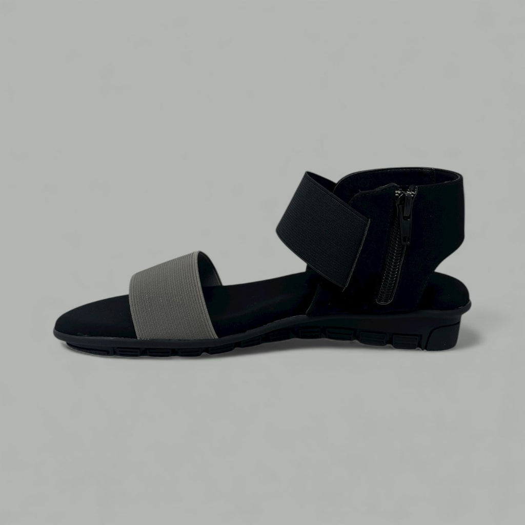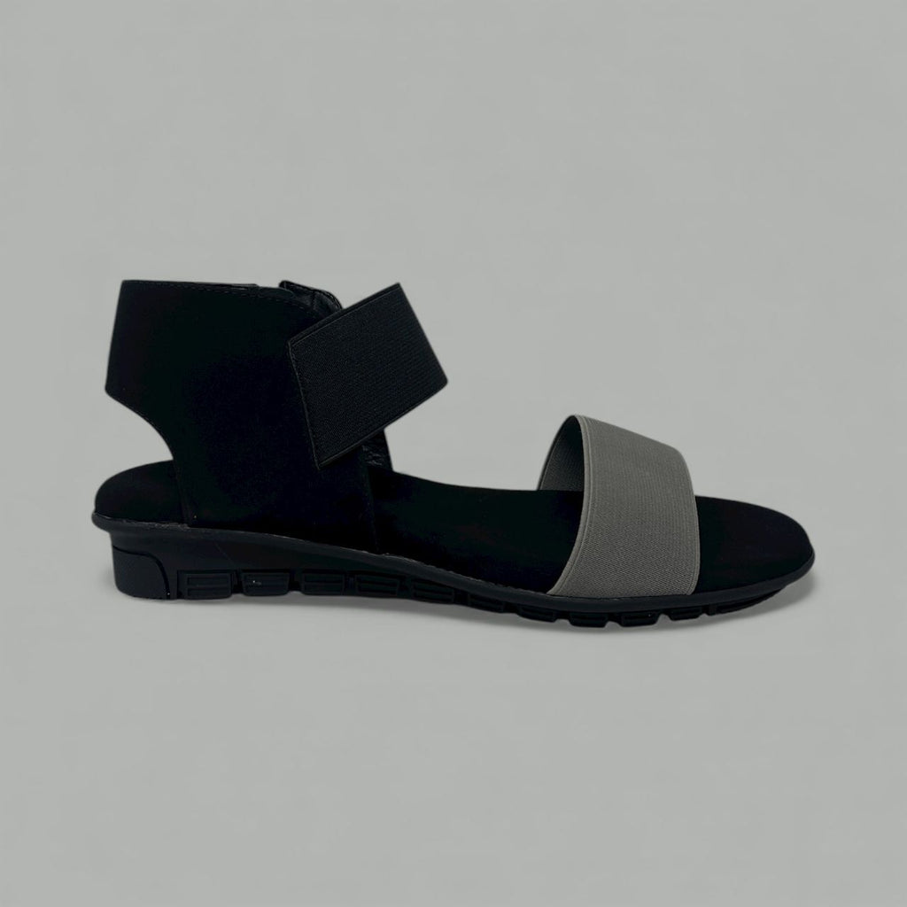 The wide, smooth leather-look straps provide a secure fit, fastening easily with elegant, oversized medallion hardware and discreet closure. Whether in classic solid tones or a chic two-tone design, this walking sandal adds an instant, confident lift to jeans, dresses, or tailored shorts.