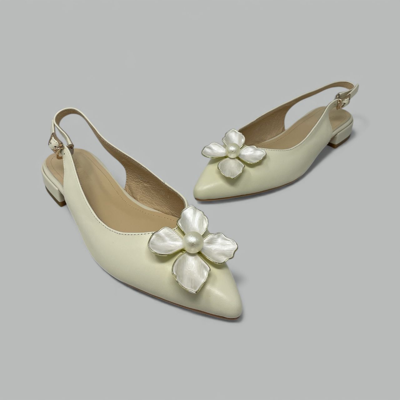 The Cherise slingback is a study in delicate, feminine refinement, ideal for adding polish to any ensemble. Crafted from smooth, supple leather in versatile black or soft cream, this shoe features a graceful pointed toe and an elegant open back silhouette.