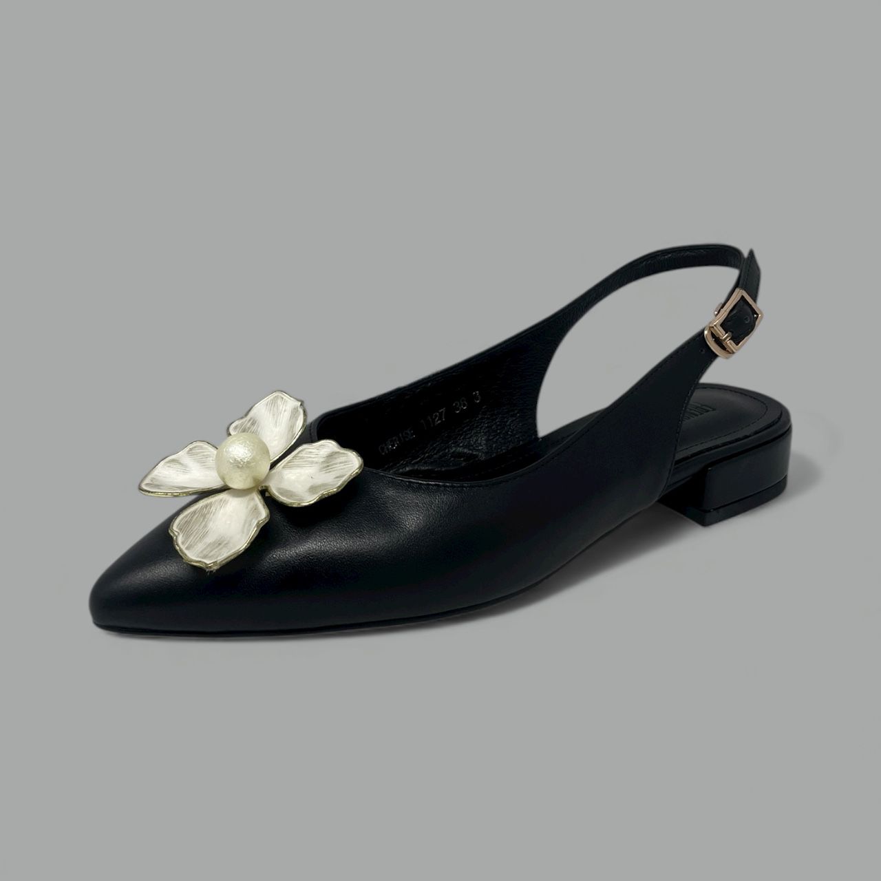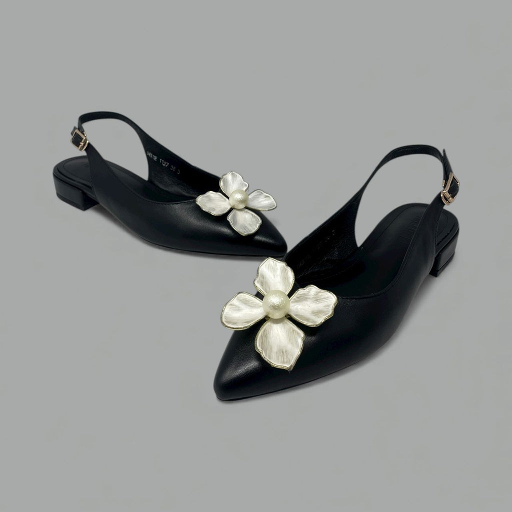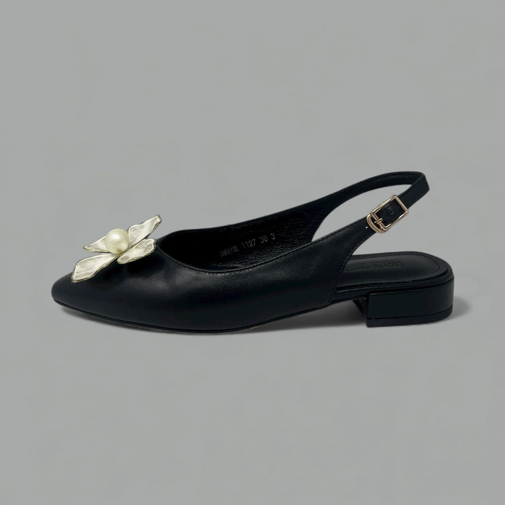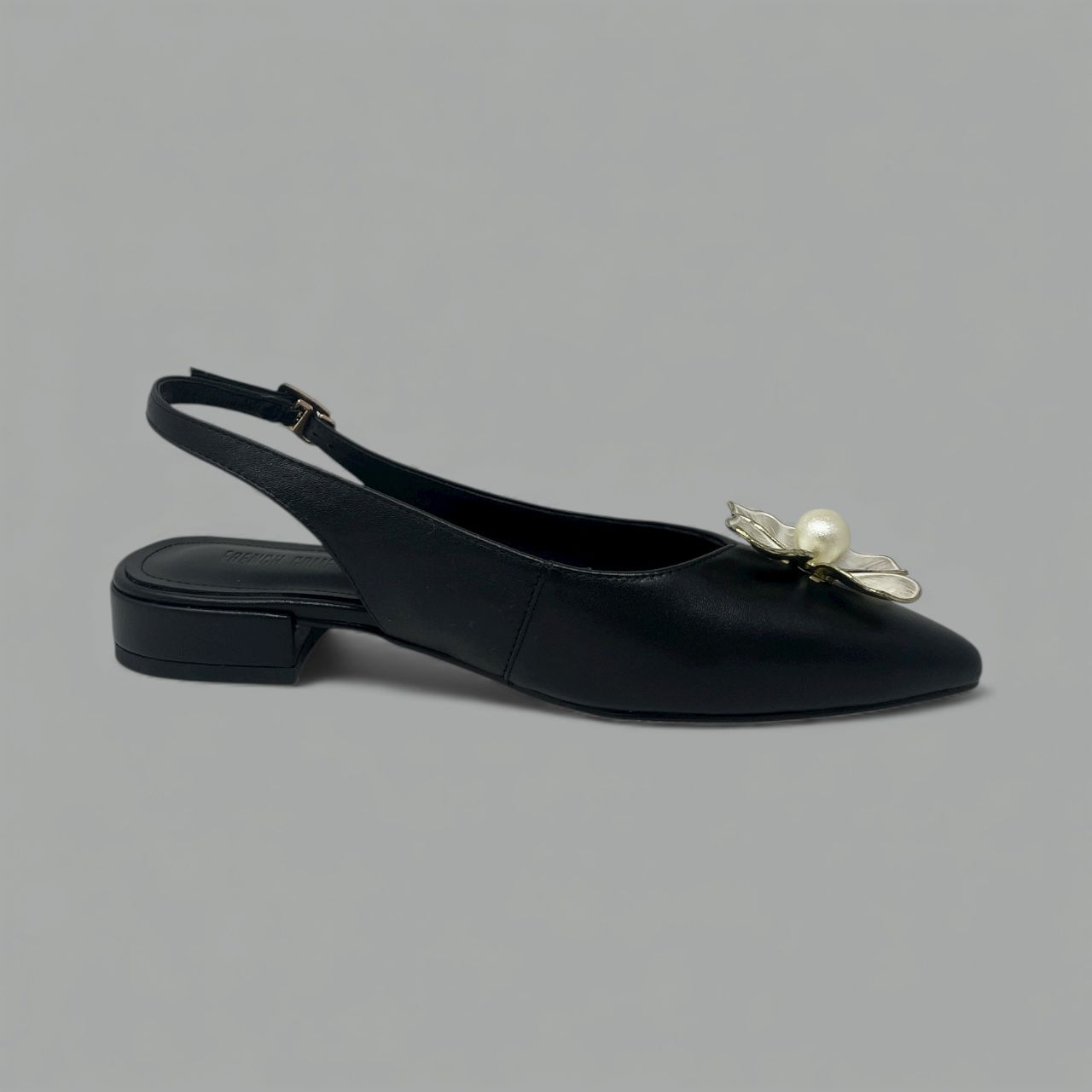 The Cherise slingback is a study in delicate, feminine refinement, ideal for adding polish to any ensemble. Crafted from smooth, supple leather in versatile black or soft cream, this shoe features a graceful pointed toe and an elegant open back silhouette.