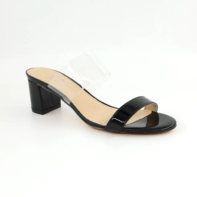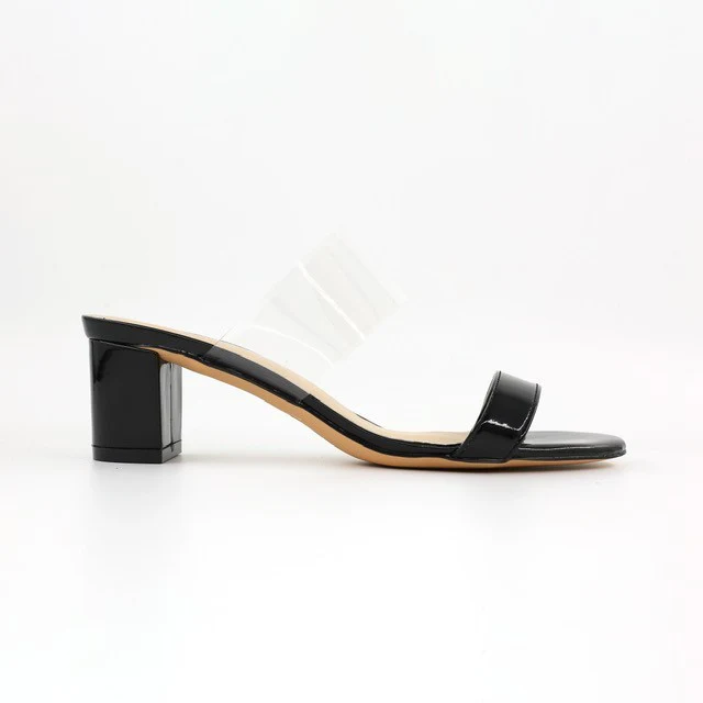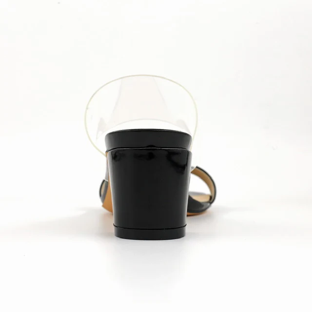 The Diane is the definition of understated elegance, pairing a sleek, single toe strap with a modern clear vinyl vamp. This minimalist design creates a flattering, barely-there look while securing the foot with effortless grace.