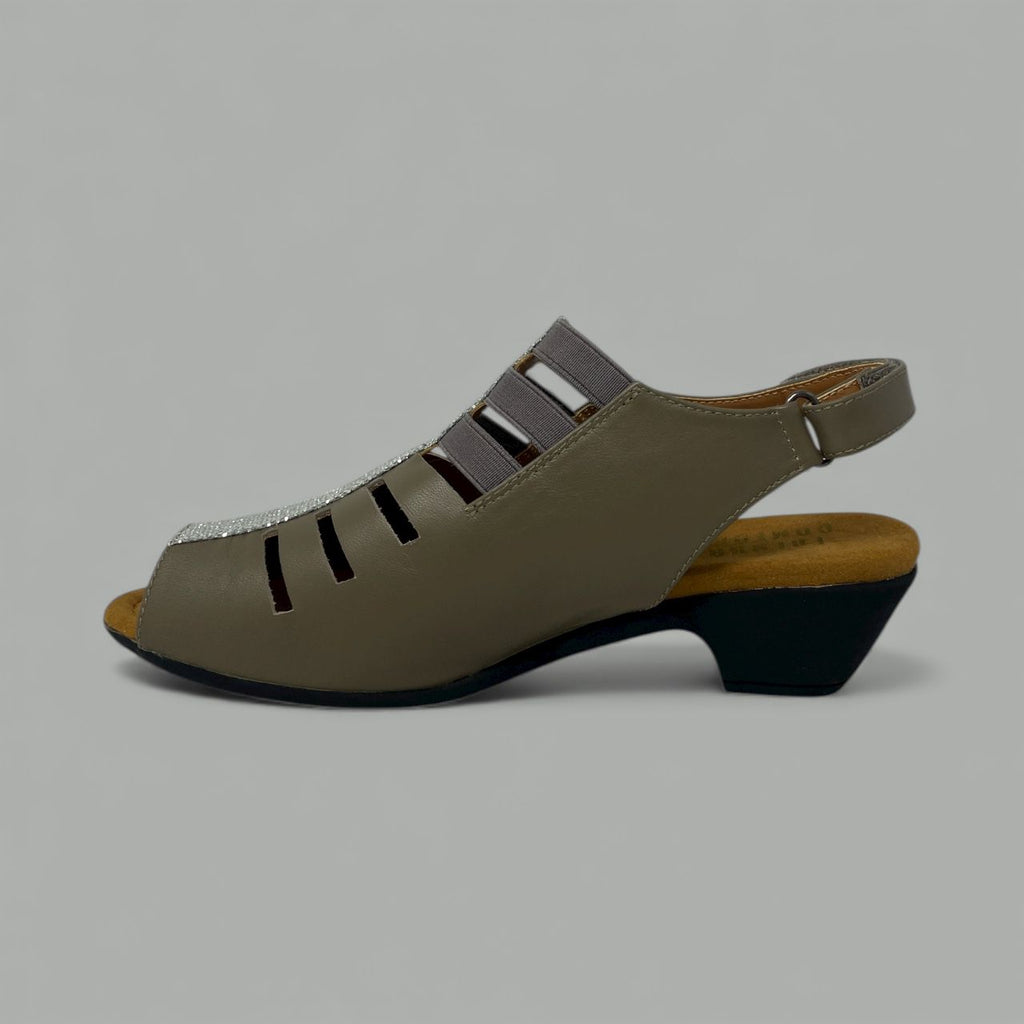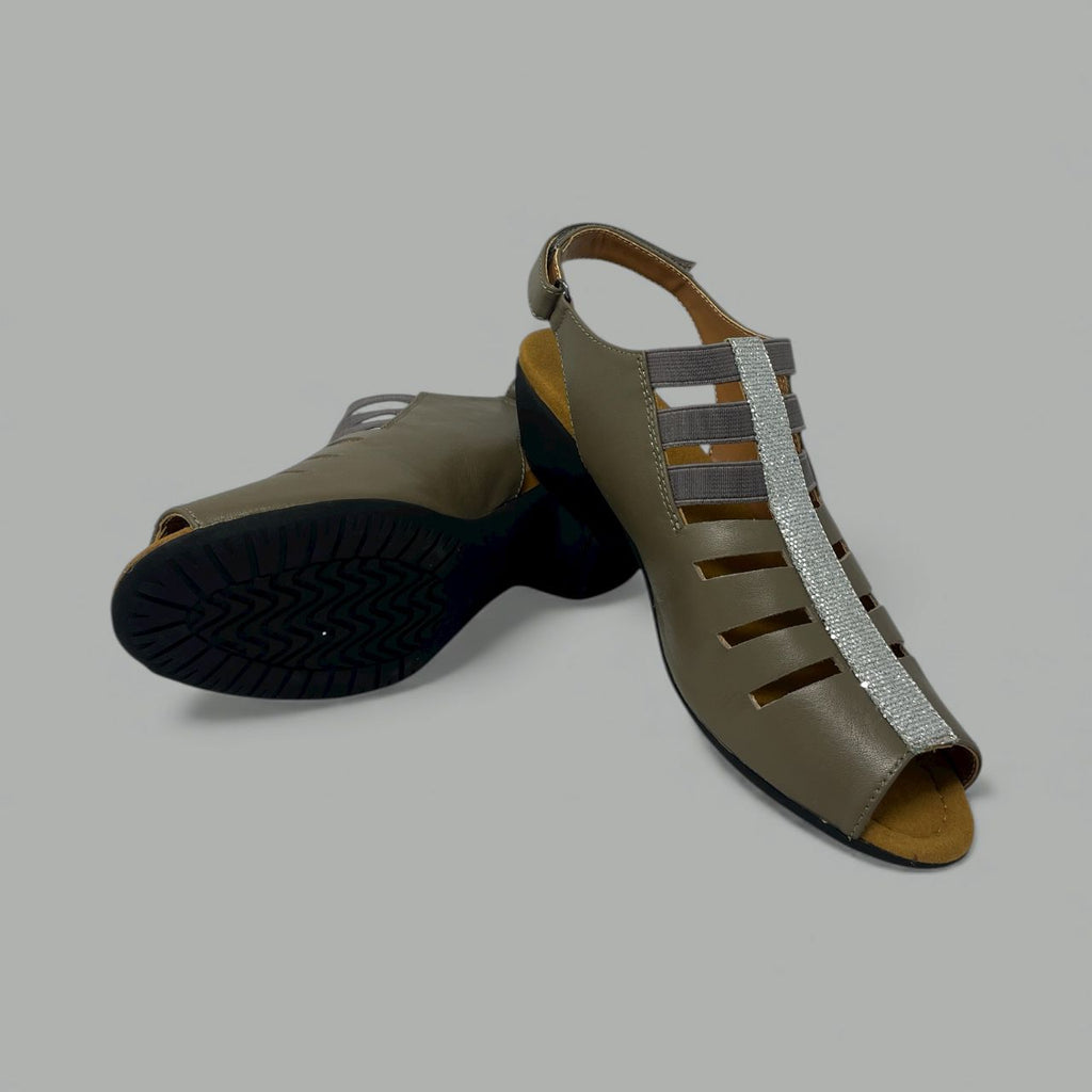 The Dubai slingback offers a stunning blend of stability and celebratory detail. The buttery-soft upper features a sophisticated cage-cutout design, complemented by subtle elastic bands that ensure a flexible, custom fit throughout the day.