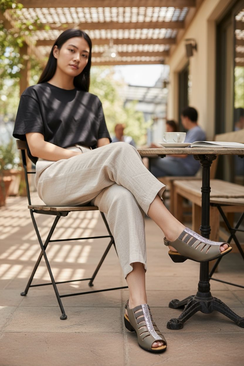 * Secure, adjustable slingback closure