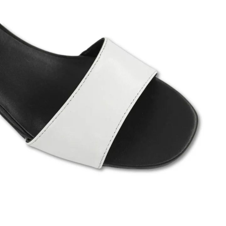 The Elijah sandal is a confident blend of graphic color and comfortable structure, perfect for the modern woman. This design captivates with a wide vamp strap featuring a bold chevron-knit pattern that introduces subtle texture and vibrant contrast to the look.