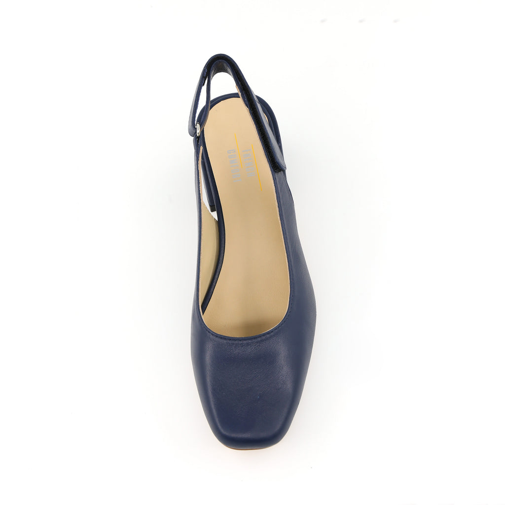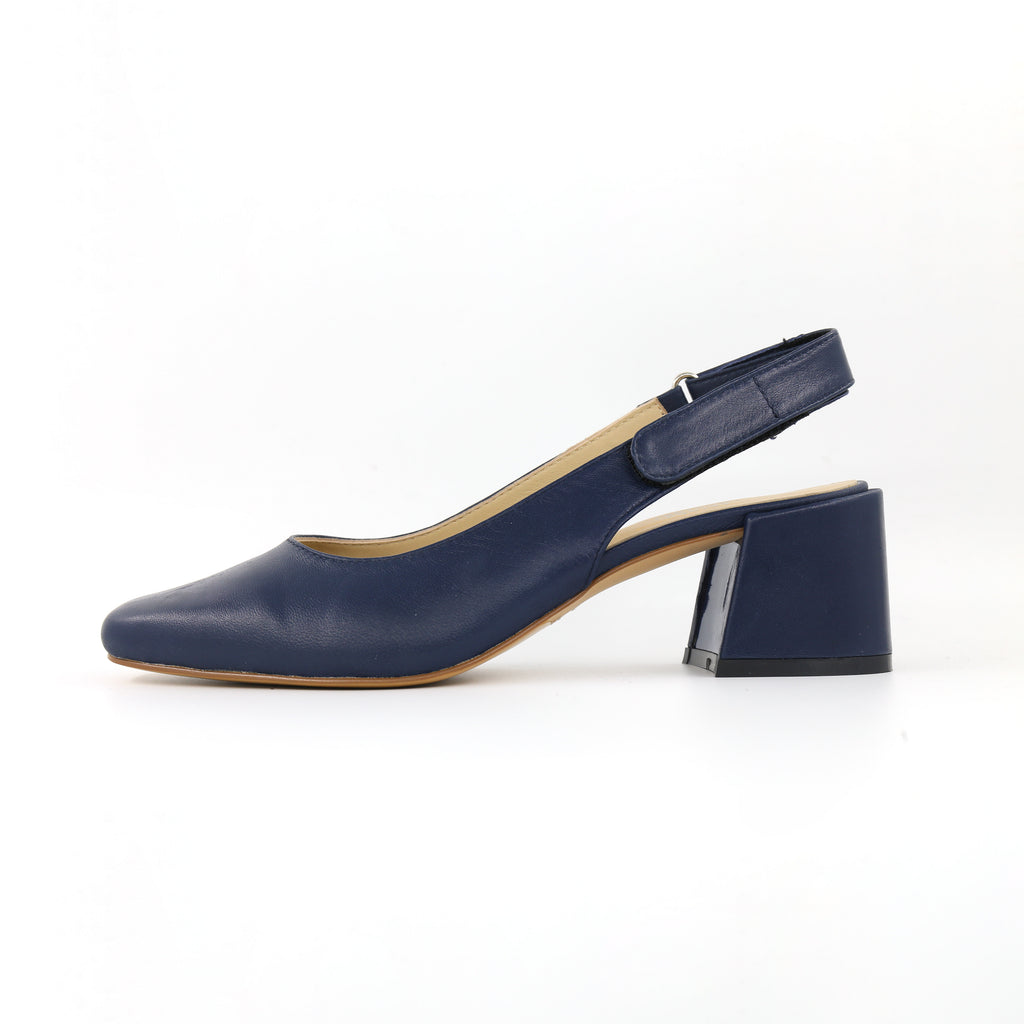 The Ruth slingback combines the polish of a classic pump with modern, walkable comfort. This sophisticated heel features a smooth, finished material upper and a refined square toe that gives it a contemporary edge perfect for the office or evening.