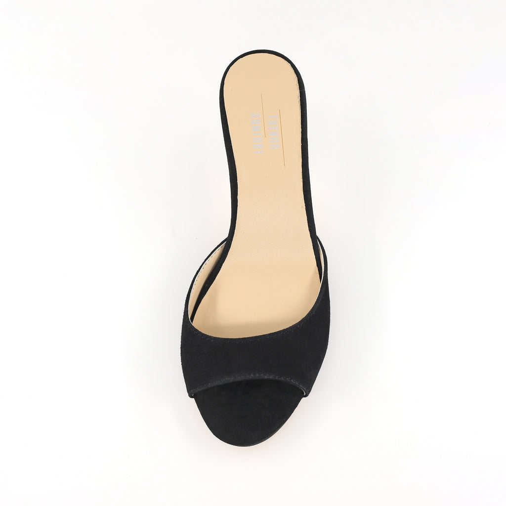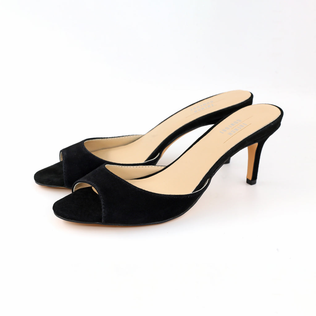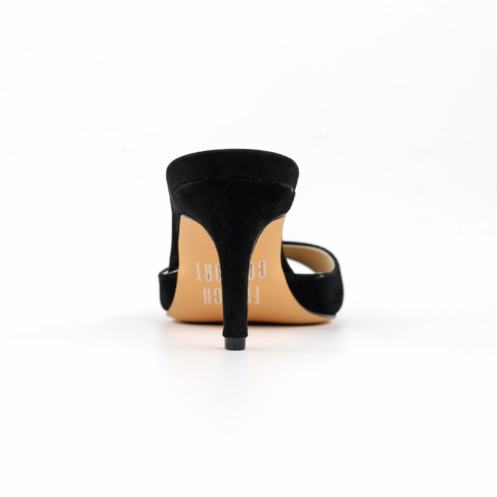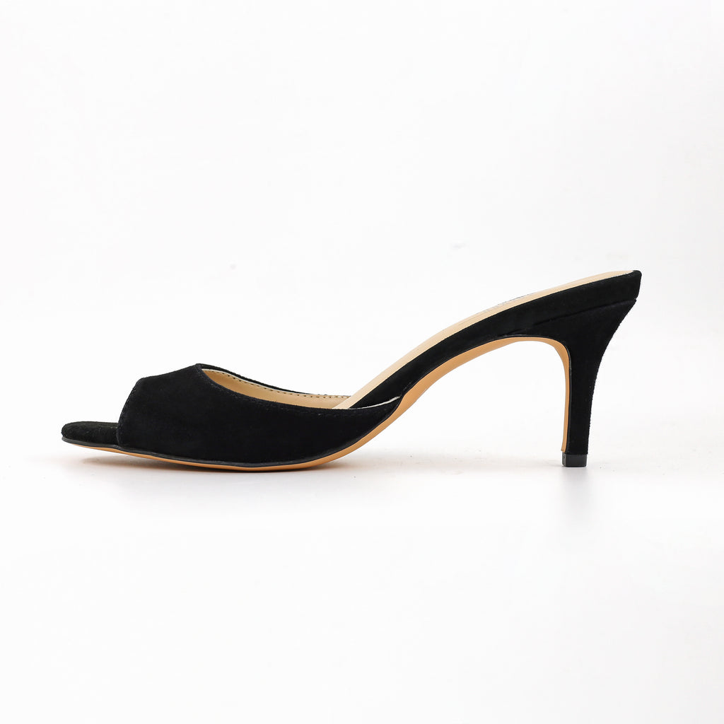 The Tiana is a deeply sophisticated mule designed for graceful movement and effortless evening elegance. Crafted from beautiful, plush suede, this slip-on heel features a slender peep-toe opening and a subtly curved vamp that flatters the foot.