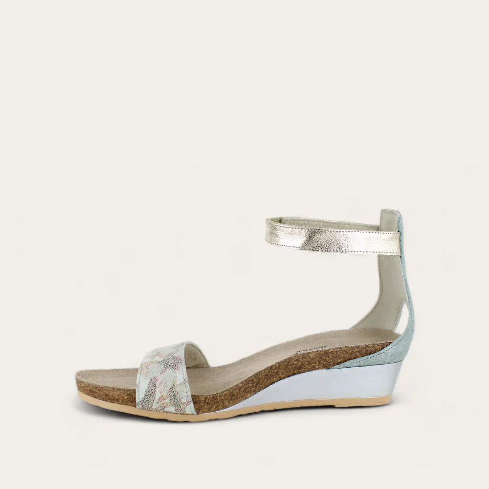 Fulfill your feminine fashion fantasies with the Pixie from Naot. This sandal has a single leather upper strap across the toes and an adjustable ankle strap with a hook-and-loop closure for a simple style. The leather lining absorbs moisture, while the cork, latex, and suede footbed absorbs shock and reduces stress on the spinal cord for superior, impact-resistant comfort. The lightweight PU and outsole flexes with your foot’s natural movement to ensure a carefree stride, while the non-skid properties deliver stability and grip for safer activities as part of your healthy lifestyle.