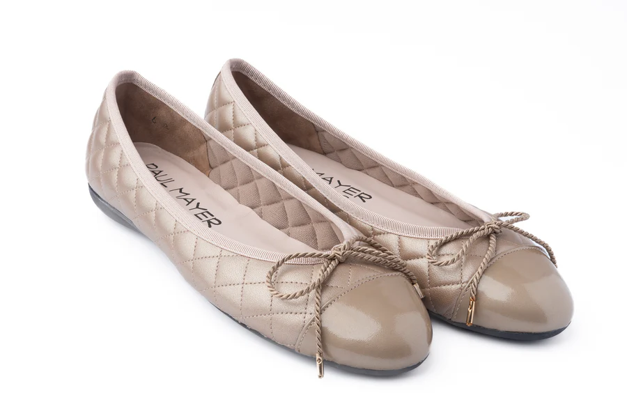PAUL MAYER - BEST QUILTED LEATHER BALLET FLAT - SIZE 10 - PATENT CHAMPAGNE / NAPPA CHAMPAGNE