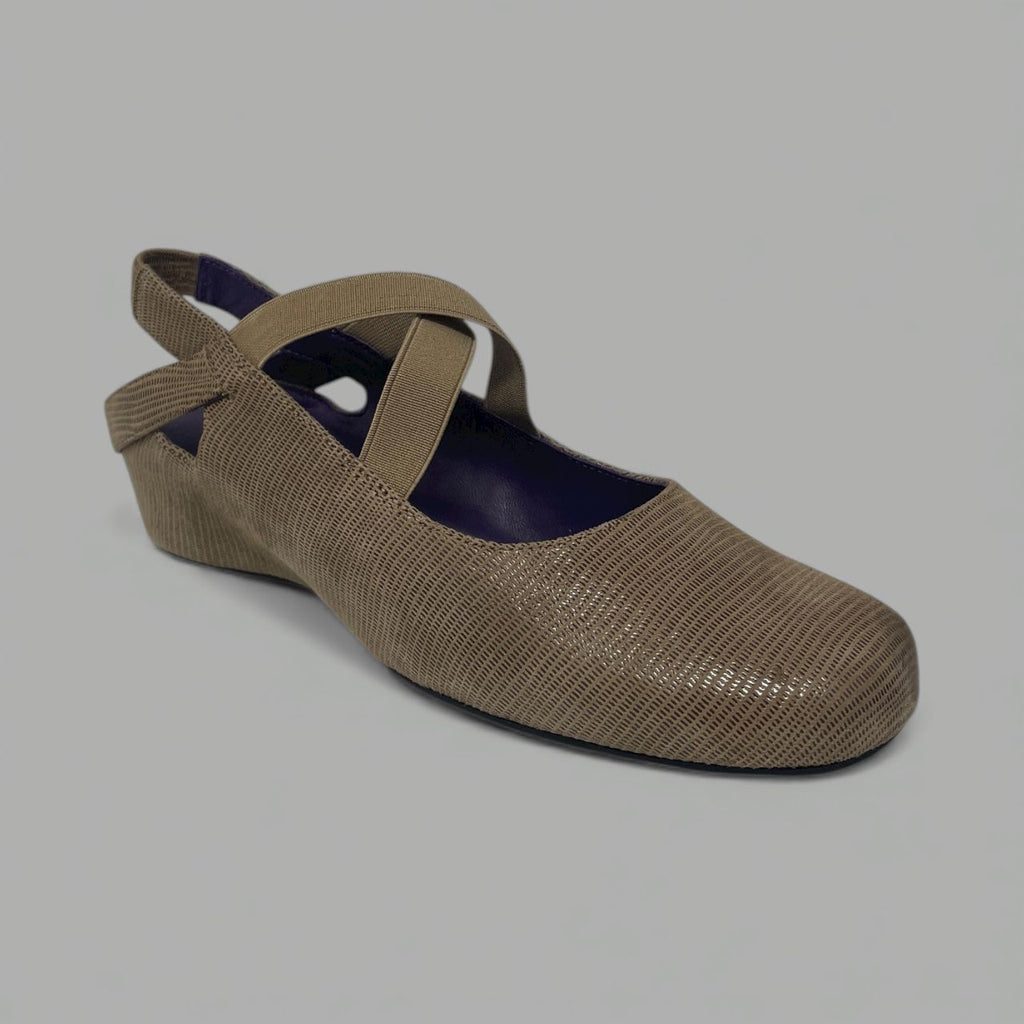 VANELI MARJORY - LIZARD-PRINT SLINGBACK WEDGE - SIZE 7.5 - TAUPE