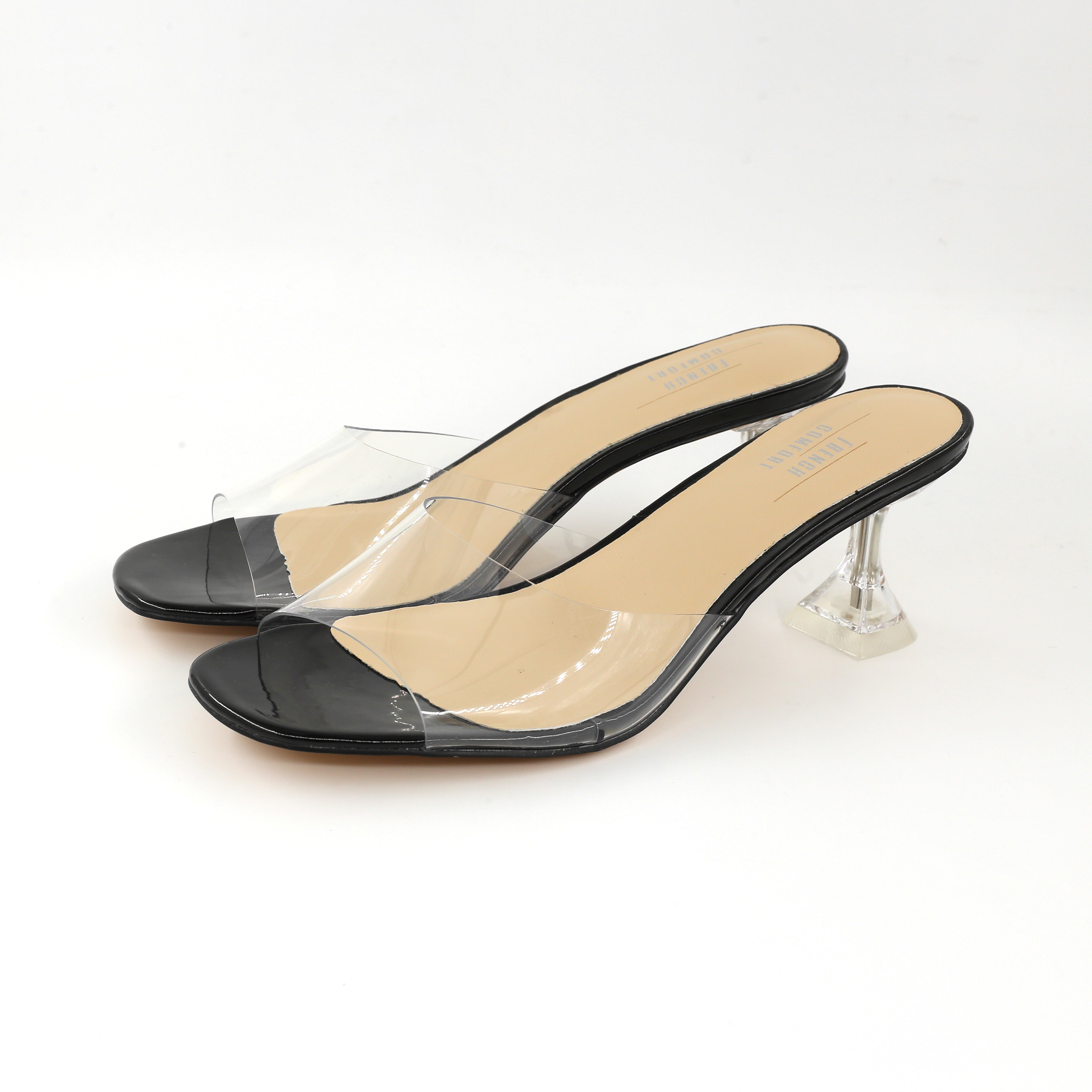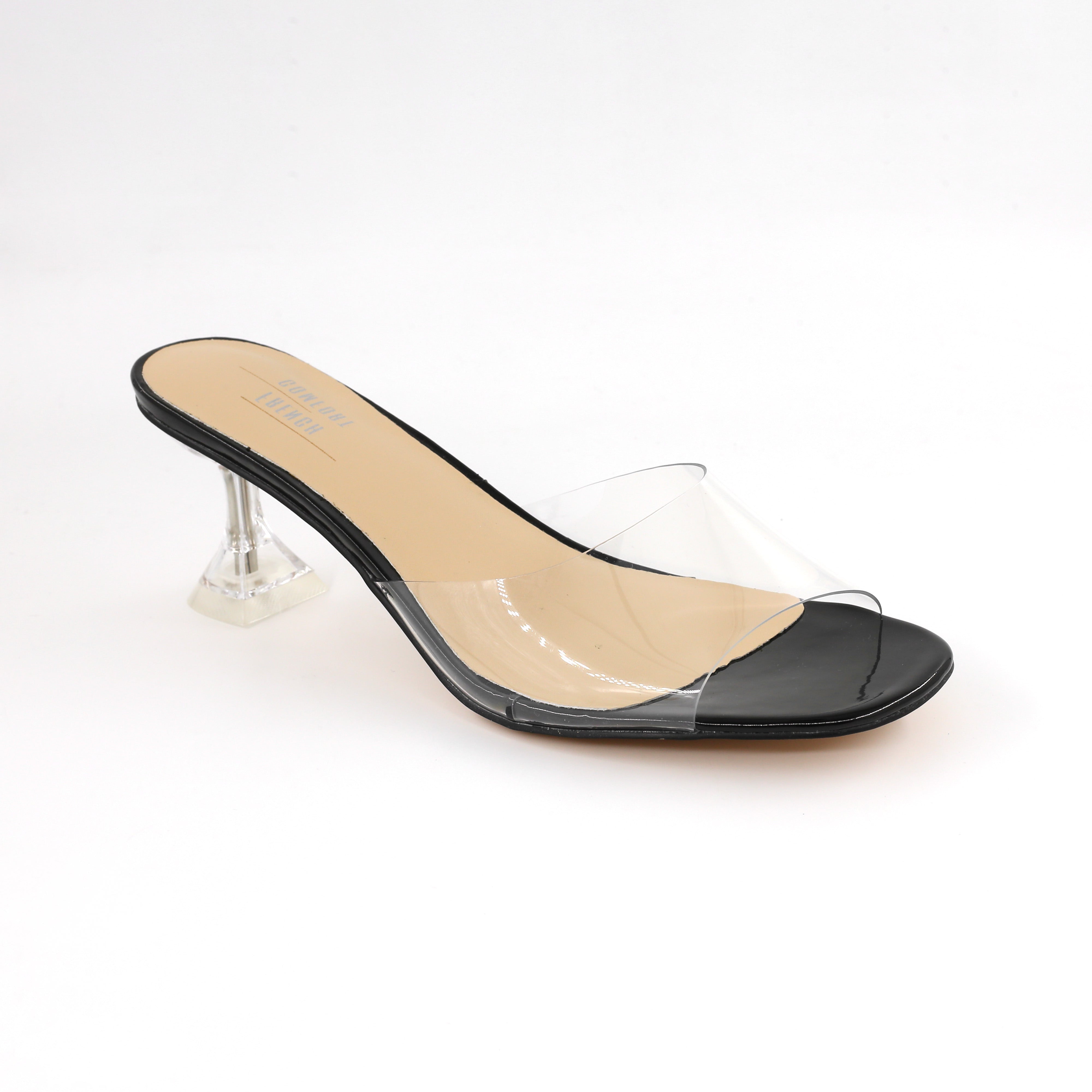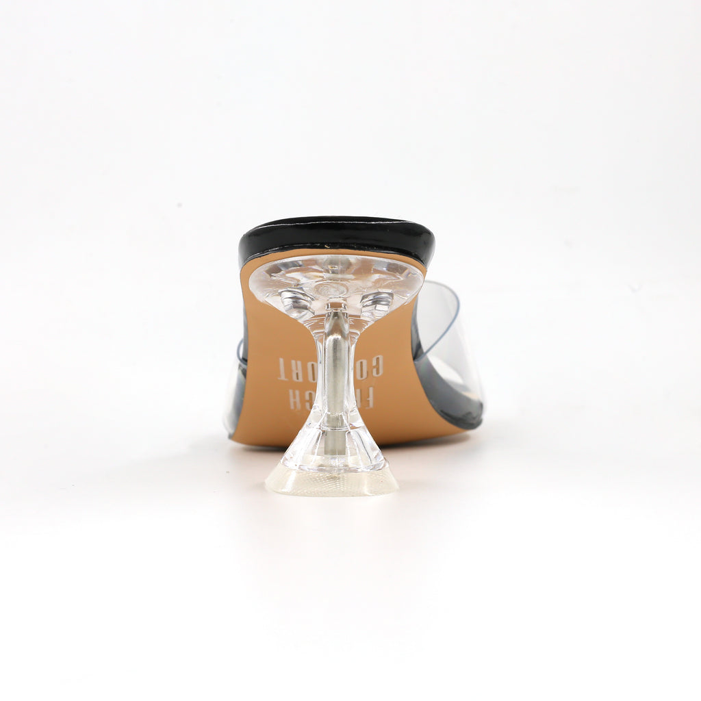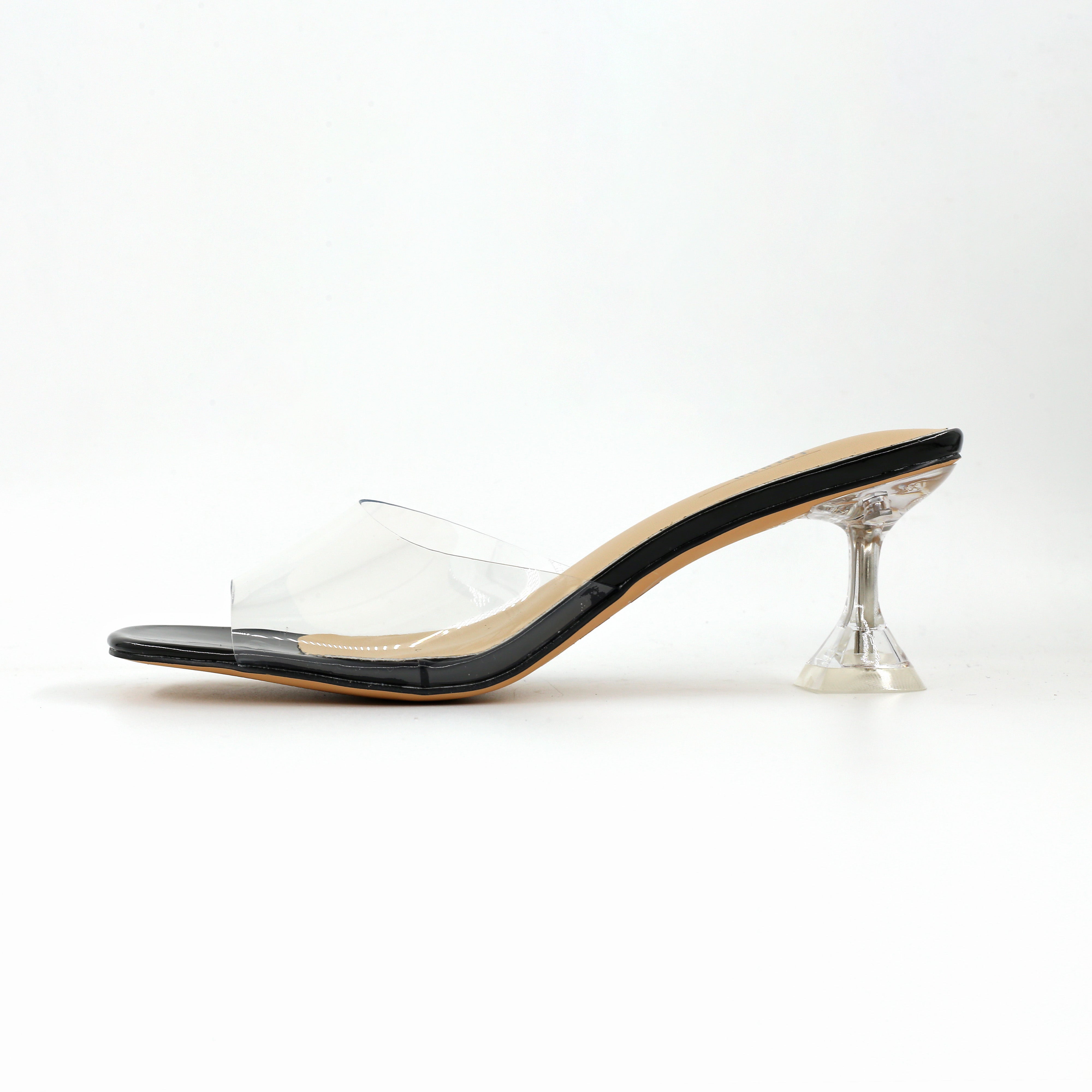 The Lizzy mule is the epitome of modern sophistication, designed to elevate your evening or special occasion wardrobe. It features a transparent, broad strap that creates a sleek, barely-there effect, beautifully showcasing the foot.