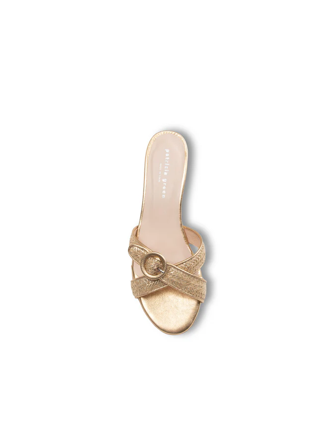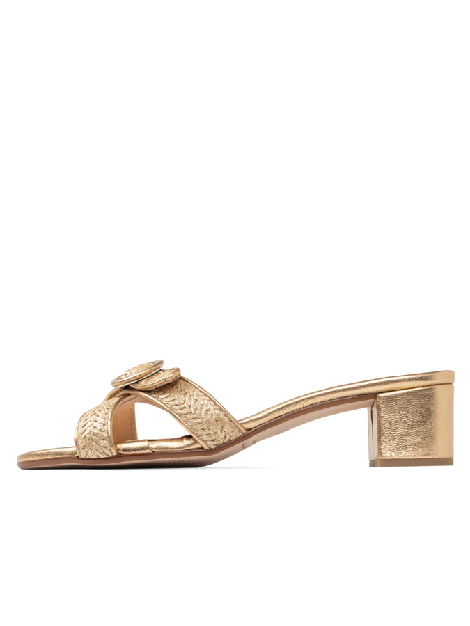 Elevate your summer wardrobe with the Geneva Block Heeled Sandal, a masterpiece of craftsmanship and design. Handcrafted in a small, family-owned factory in Spain, this sandal features a refined braided strap design, a chic gold metallic finish, and an elegant circular buckle detail that embodies effortless sophistication.