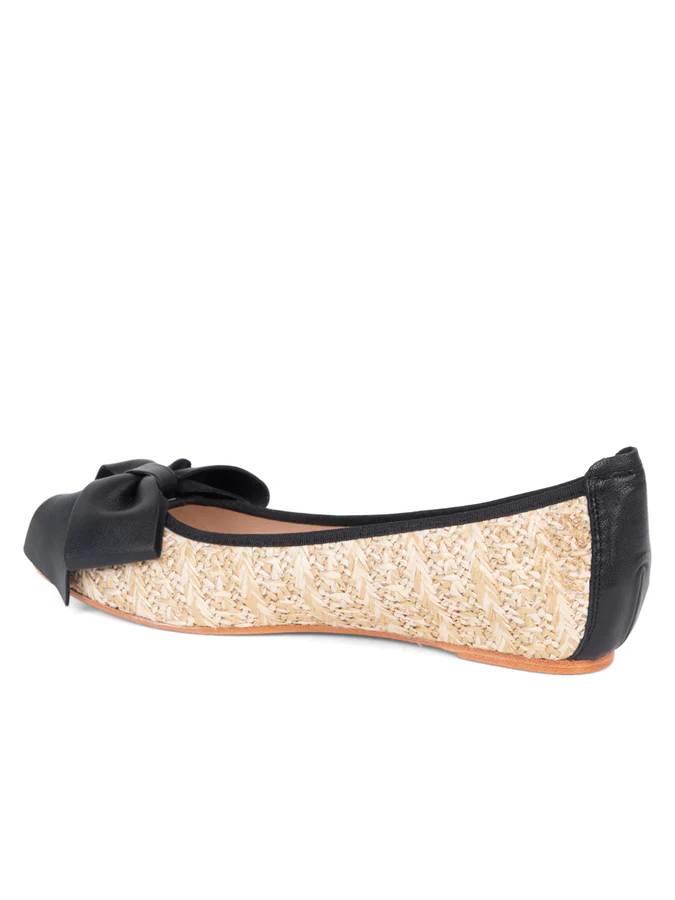 The classic ballet gets a spring update with its raffia finish and darling oversized bow.
