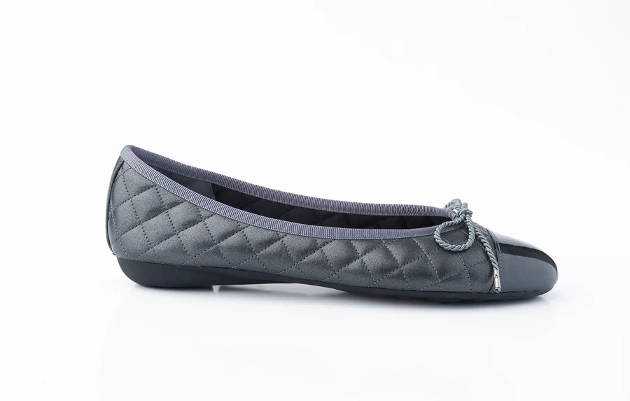 PAUL MAYER - BEST QUILTED LEATHER BALLET FLAT - SIZE 6.5 - PATENT PEWTER / NAPPA PEWTER
