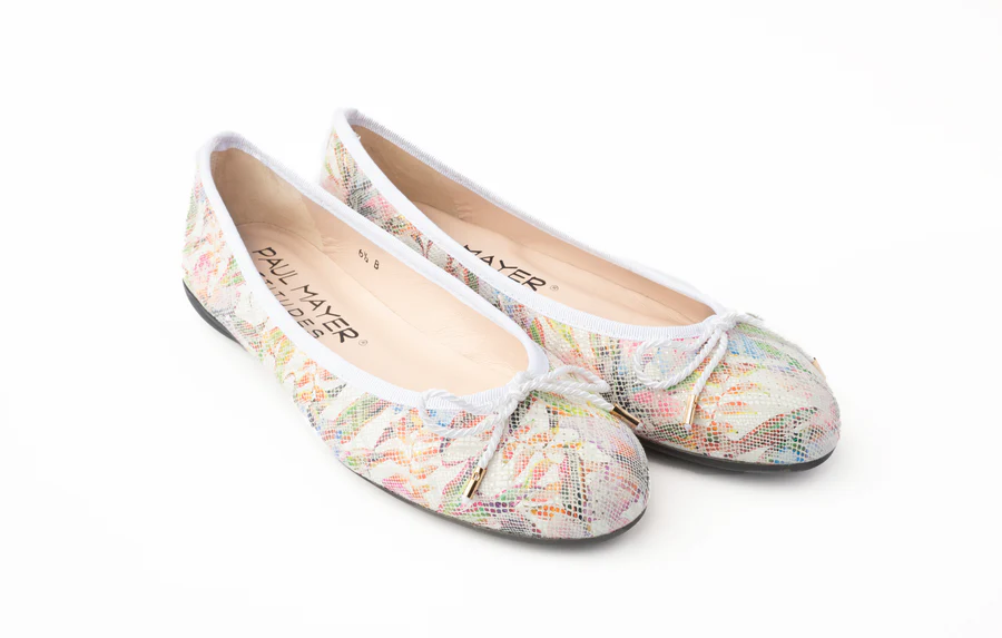 A two-toned ballet flat with a lightweight, flexible rubber sole. An easy to wear, comfortable must-have ballet flat for every wardrobe. Brighten up your wardrobe with a variety of fun color combinations you'll love for years to come! Fully functional fit-adjusting cord, that allows you to tie the bow at your perfect and secure fit. Our latest design to the Paul Mayer Collection, the Brave fits like our customer favorite: the Best.