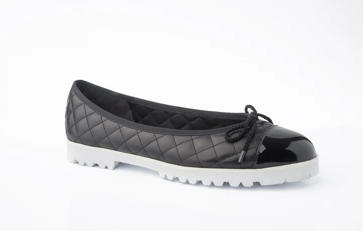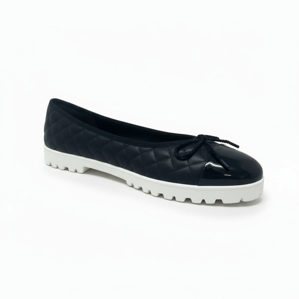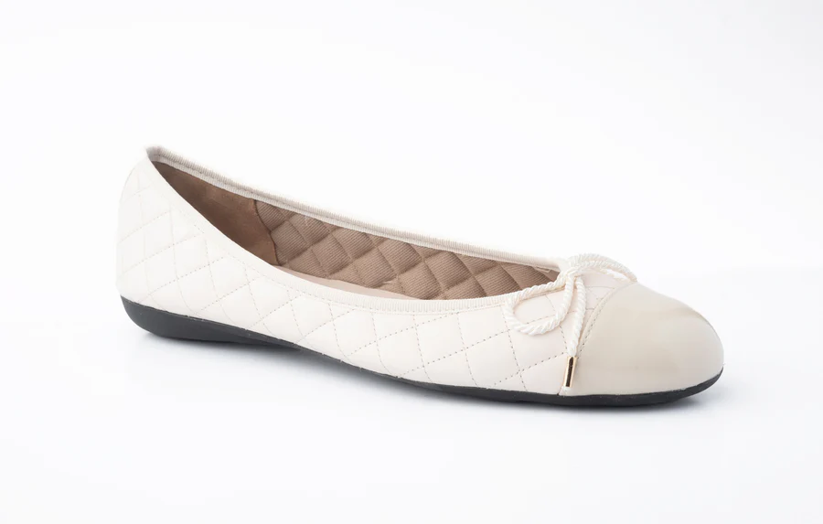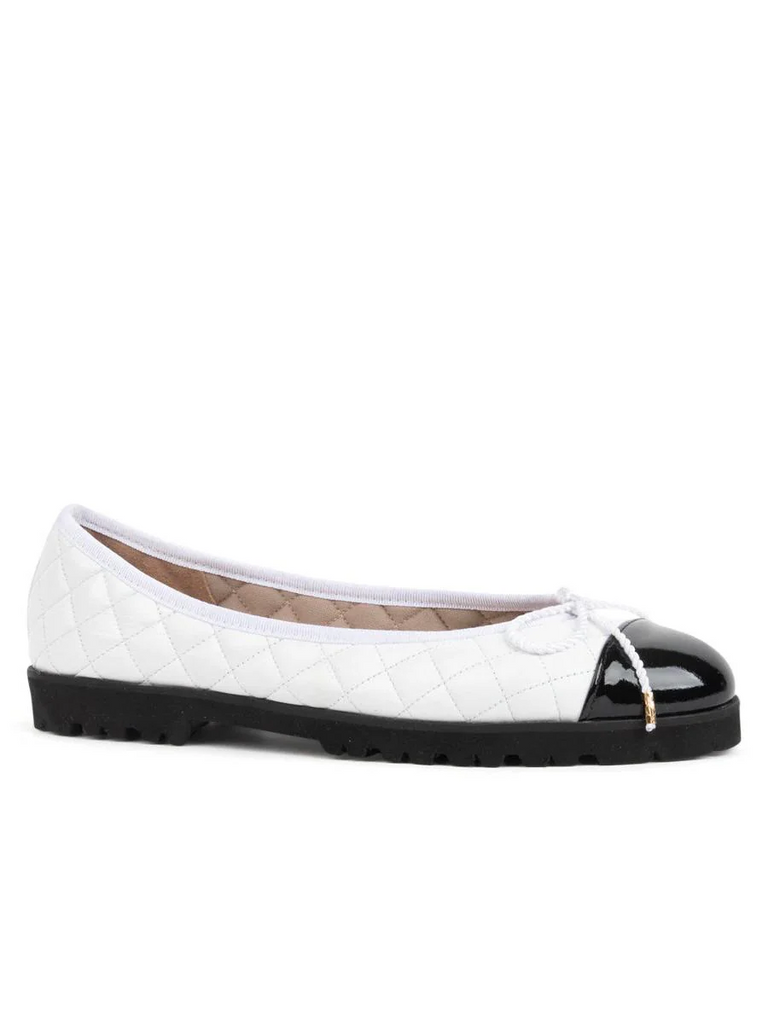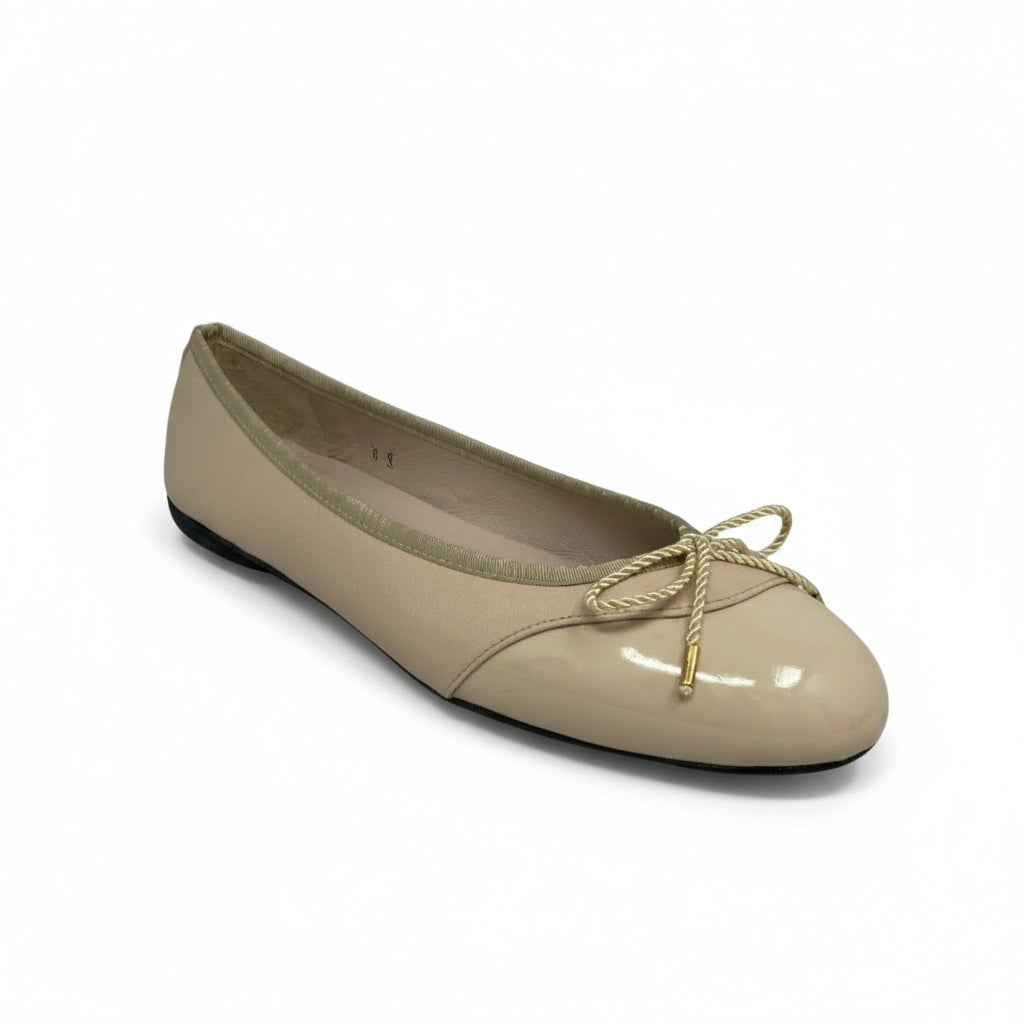 PAUL MAYER - BEST QUILTED LEATHER BALLET FLAT - SIZE 9 - PATENT MARFIL / NAPPA MARFIL