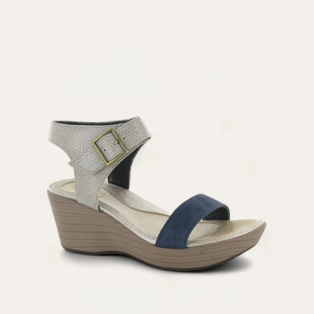 NAOT - CAPRICE - SIZE 40 - BEIGE LIZARD LTHR/NAVY VELVET NUBUCK