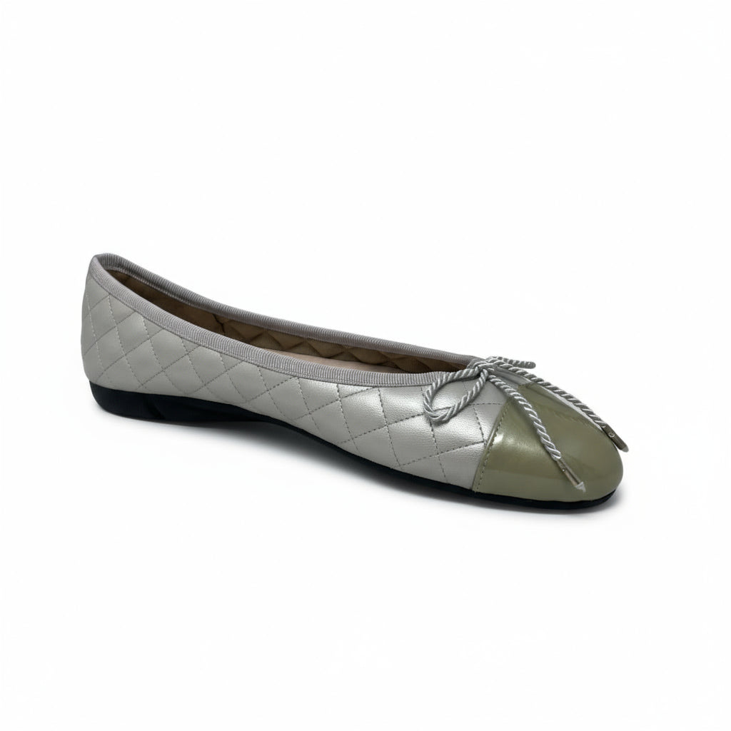 PAUL MAYER - BEST QUILTED LEATHER BALLET FLAT - SIZE 9 - PATENT SILVER / SOFT GLOW SILVER