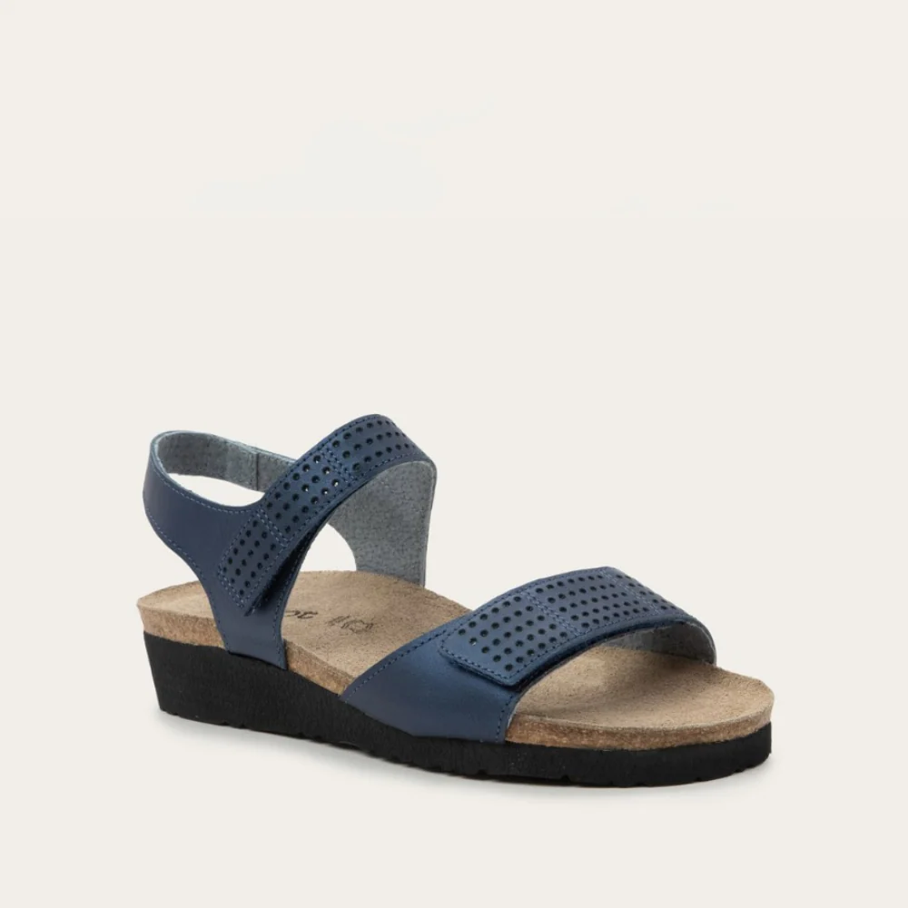 The Vivian is a comfortable sandal with a cutout design contrasting underlay. Its double hook and loop straps allow for easy on/off. Naot's anatomic cork & latex footbed is wrapped in a pampering suede and molds to the shape of the foot with wear. American Podiatric Medical Association (APMA) Accepted for promoting good foot health.