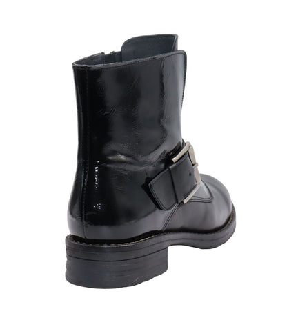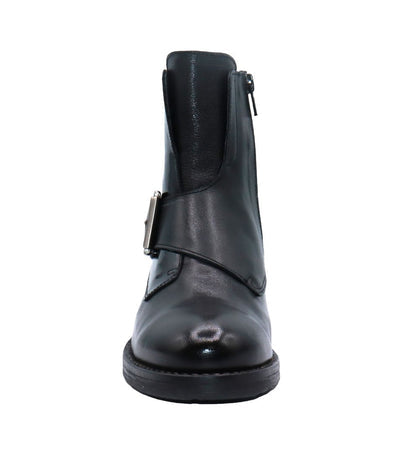 Handmade in Portugal, the Sheridan by Eric Michael blends sleek sophistication with a bold, contemporary edge. Crafted from rich, high-quality leather, this ankle boot features a striking metallic finish and a statement buckle strap that adds both flair and function. The smooth silhouette and low block heel create a versatile design that pairs effortlessly with jeans, skirts, or tailored looks.