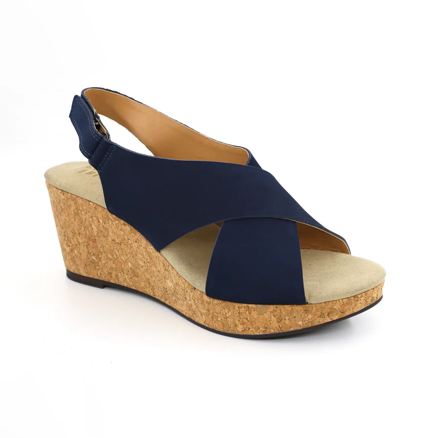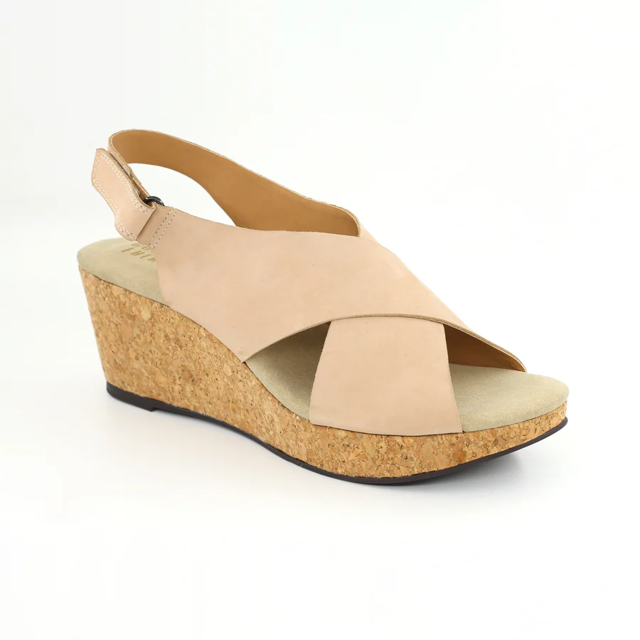 Anchored by a lightweight, supportive natural cork wedge, the Abigail offers a flattering height without compromising stability. The soft footbed is lightly cushioned, providing a gentle foundation for comfortable wear from morning errands to garden parties.