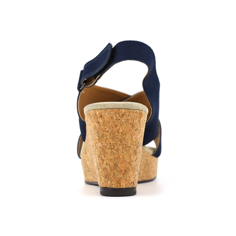 The Abigail wedge sandal is the embodiment of natural ease and enduring comfort, perfect for effortless styling throughout the warmer seasons. Its timeless design beautifully combines soft materials with the organic texture of a cork sole.