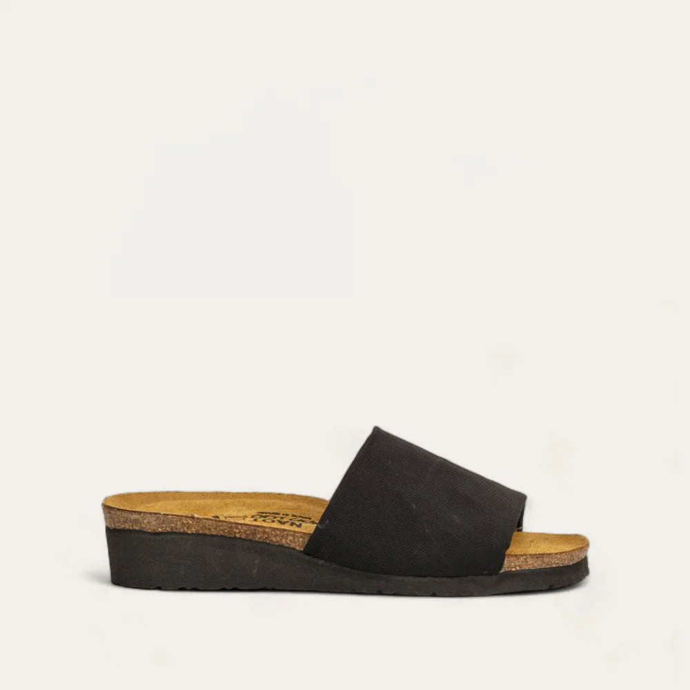 The Alana is a classic slide on sandal. This style has a stretch upper for accessibility and adjustability. Naot's anatomic cork and latex footbed is wrapped in a pampering suede and molds to the shape of the foot with wear