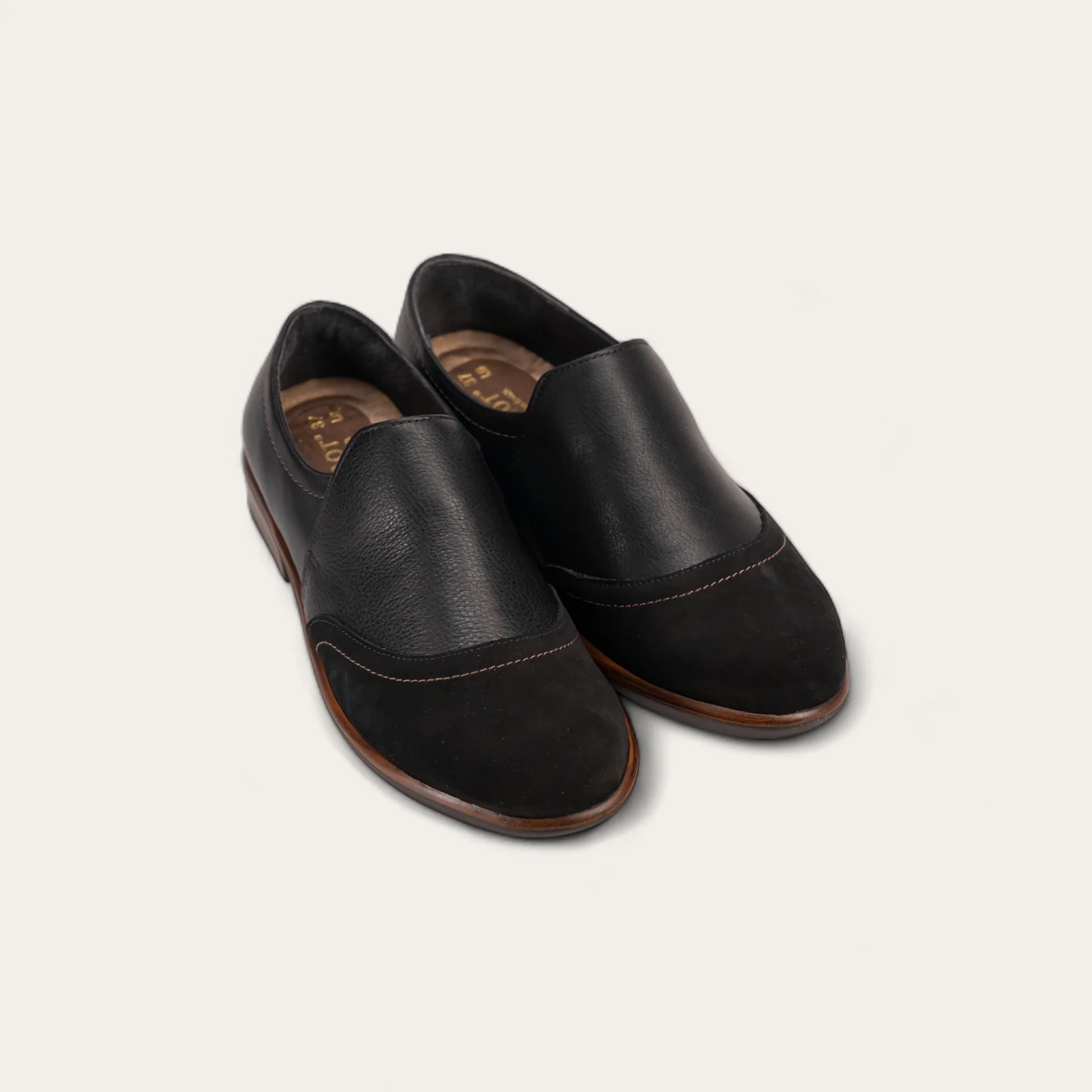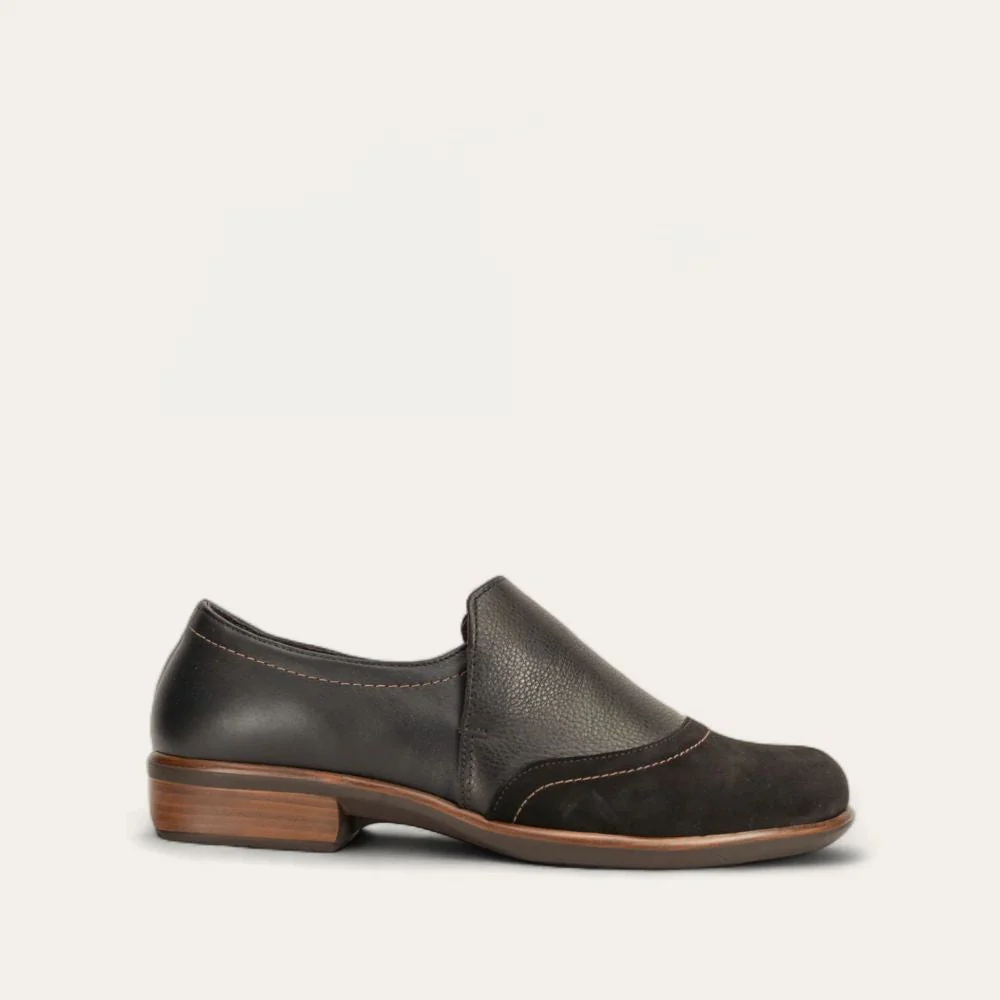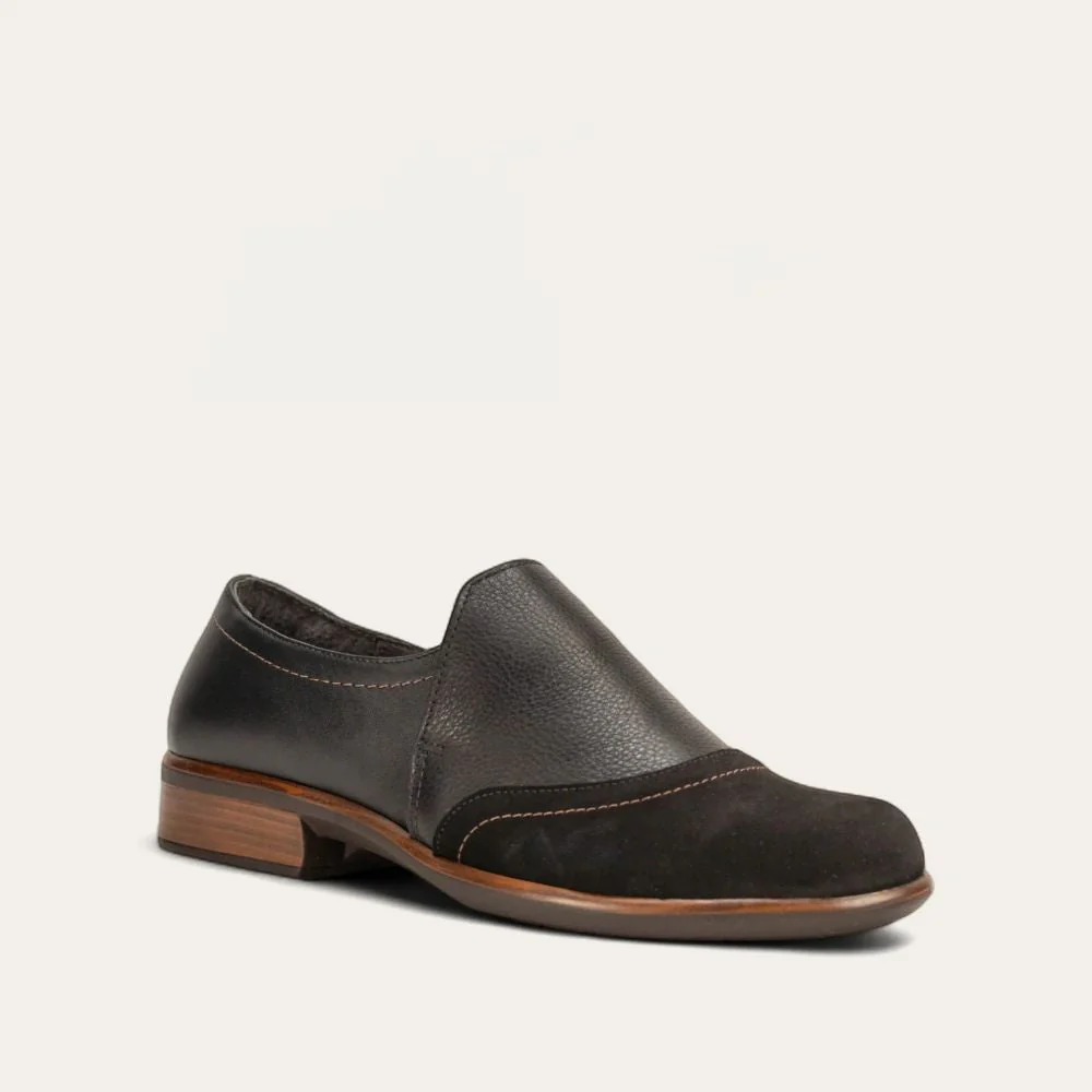 A sophisticated classic, the Angin is your go to slip on boot for the office or out and about around town. This style features a mix of soft leather, suede, and nubuck paired with hidden gore for an easy slip on. The Angin has a removable cork and latex footbed and an abrasive sole for anti-slip. Our patented Naot Replacement Footbeds are available for Angin.