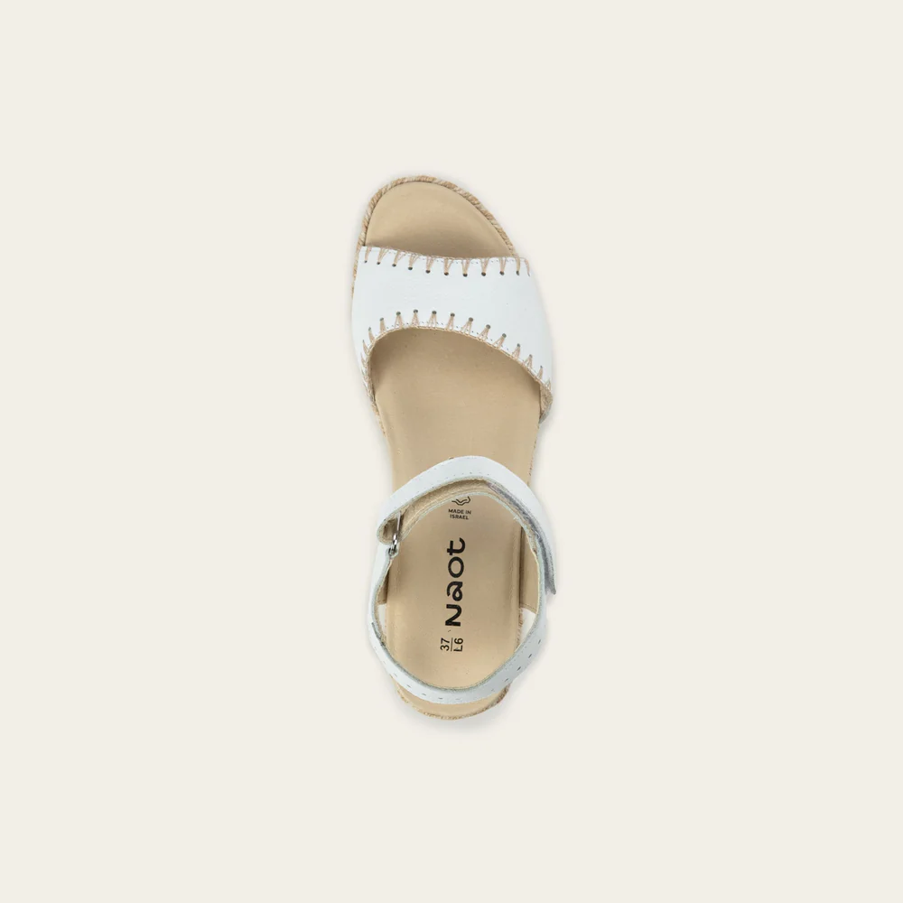 Introducing Blanes - where modern versatility meets timeless style. This sandal features a backstrap with a hook and loop closure, ensuring a secure and adjustable fit. Contrasting stitch accents add a touch of sophistication, making Blanes a standout choice for casual elegance. Perfect for everyday wear, Blanes combines comfort with understated chic for any occasion. Crafted with Naot's anatomic cork and latex footbed wrapped in smooth leather, these shoes mold to the shape of your foot with wear, ensuring personalized comfort. The Costal Collection's EVA sole offers the look of a 3-inch wedge without the discomfort, providing both style and stability with every step.