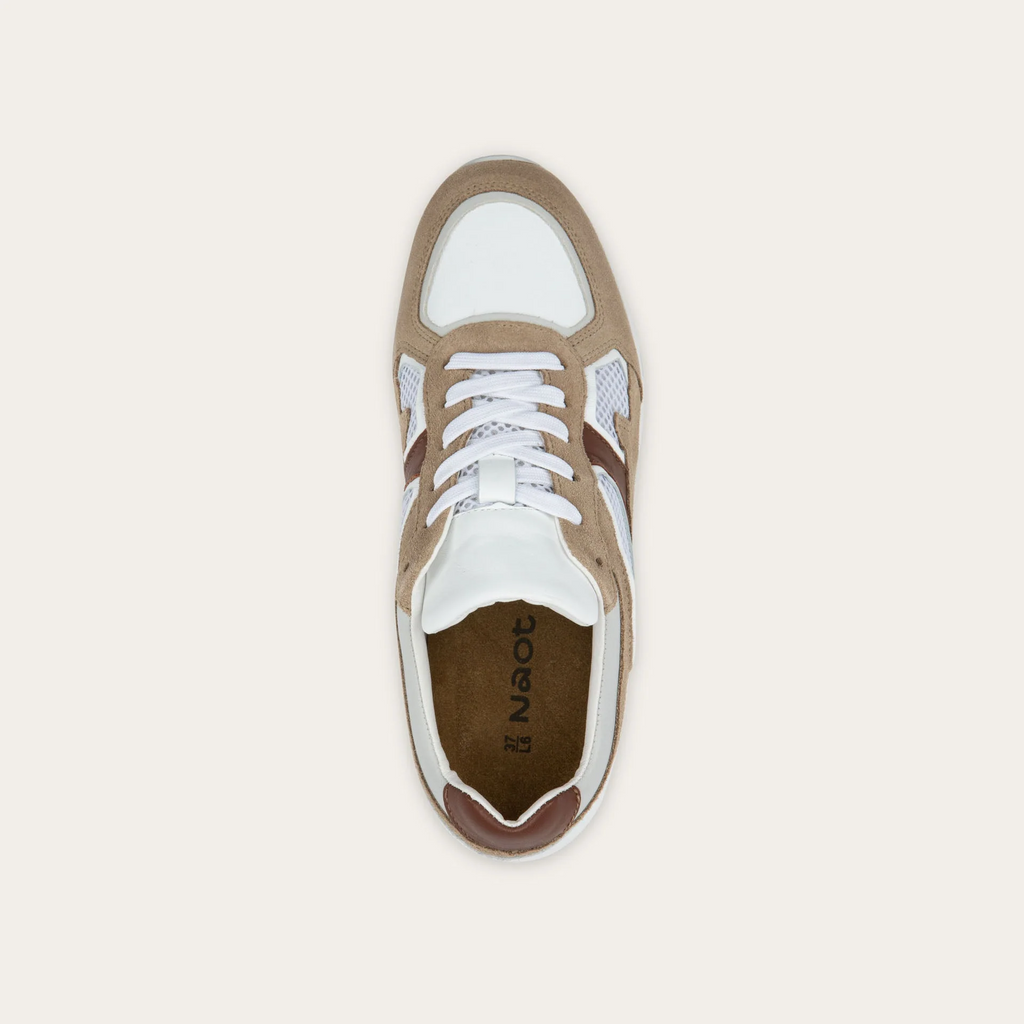 Step up your style with the Collins Sneaker from our Boulevard Collection. Featuring contrasting leather, suede, and mesh details, this sneaker offers a fresh, modern look with breathable design elements. The sleek silhouette is both versatile and stylish, making it a perfect choice for any casual occasion. Designed for comfort, the 1.5" sole provides lightweight cushioning and support, while Naot’s removable footbed ensures personalized comfort throughout the day. The slip-resistant sole offers steady traction, so you can move with confidence, no matter where you go. Whether you're navigating the city streets or enjoying a laid-back day, the Collins Sneaker combines fashion and function in one sleek package..