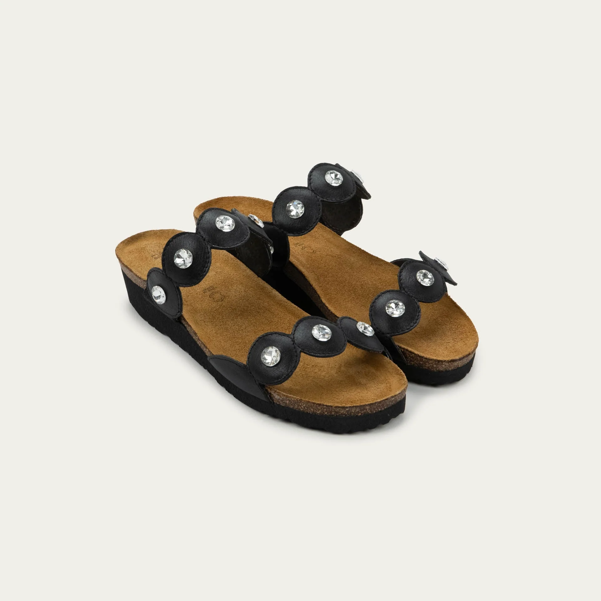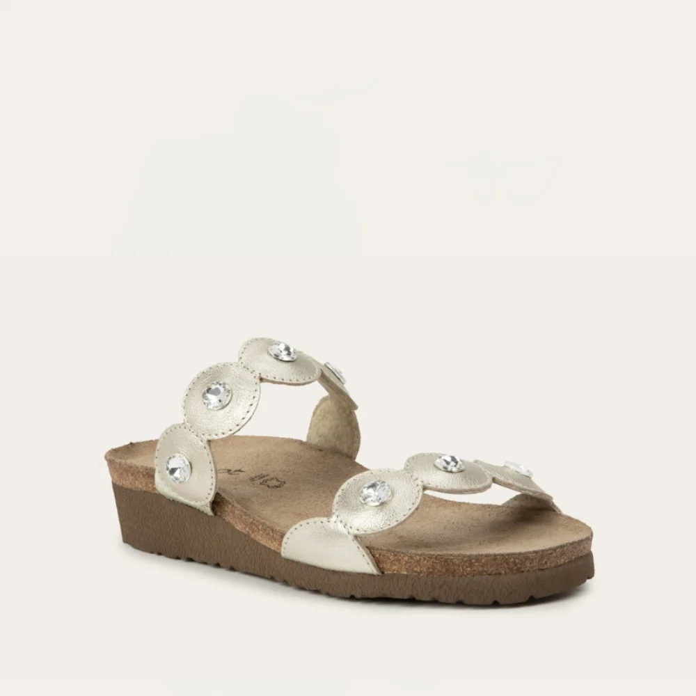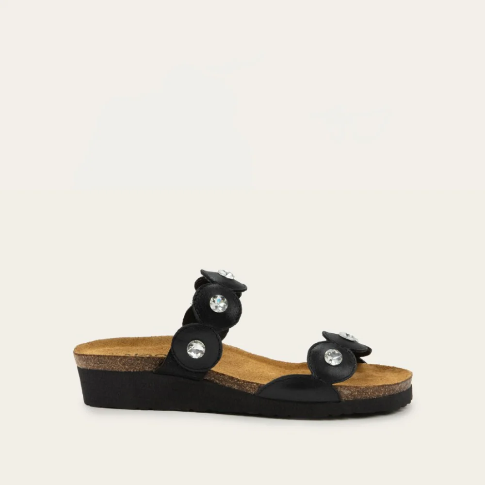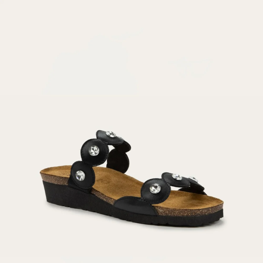 Meet Hailey - your perfect blend of comfort and glamour. With its sleek design featuring gore and dazzling rhinestone accents, this slide adds a touch of sparkle to any outfit. The easy slip-on design ensures convenience without compromising on style, making Hailey the ideal choice for any occasion. Crafted with Naot's anatomic cork and latex footbed wrapped in pampering suede and molds to the shape of your foot with wear, ensuring personalized comfort. Plus, it's accepted by the American Podiatric Medical Association (APMA) for promoting good foot health. The Elegant Collection's 1.5" EVA sole offers both elegance and support.