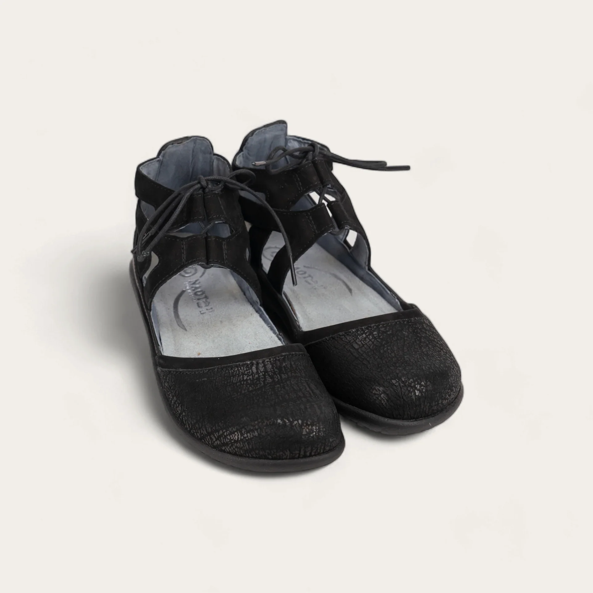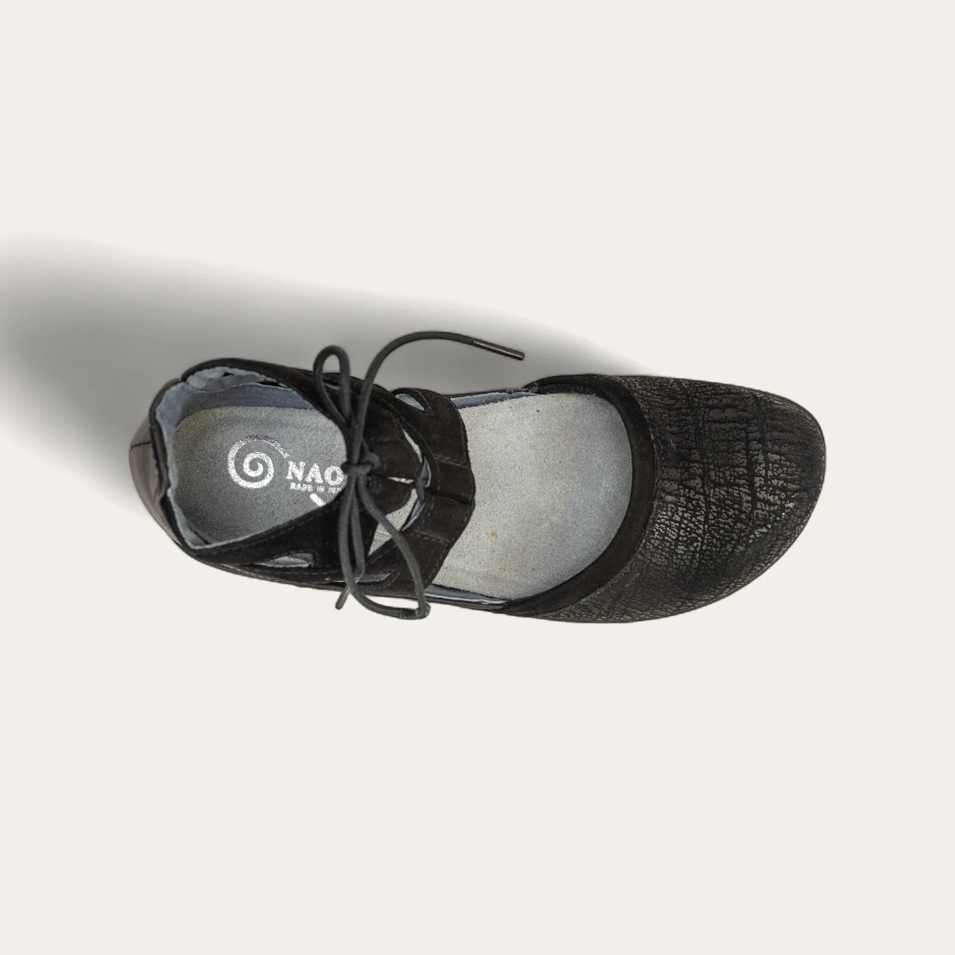 The Kata is a cute transitional shoe. This style has a padded heel cup and instep for ultimate comfort. The Kata has laces at the instep for accessibility and adjustability. The front of this shoe has padded technical lining which provides comfort, warmth and moisture absorption. Naot's removable, anatomic cork and latex footbed is wrapped in pampering suede and molds to the shape of the foot with wear. The Koru Collection features a 1" polyurethane sole which is extremely lightweight, durable and slip resistant. This collection uses a hand-sewn Strobel construction making it strong and extremely flexible. American Podiatric Medical Association (APMA) Accepted for promoting good foot health. Our patented Naot Replacement Footbeds are also available for Kata.