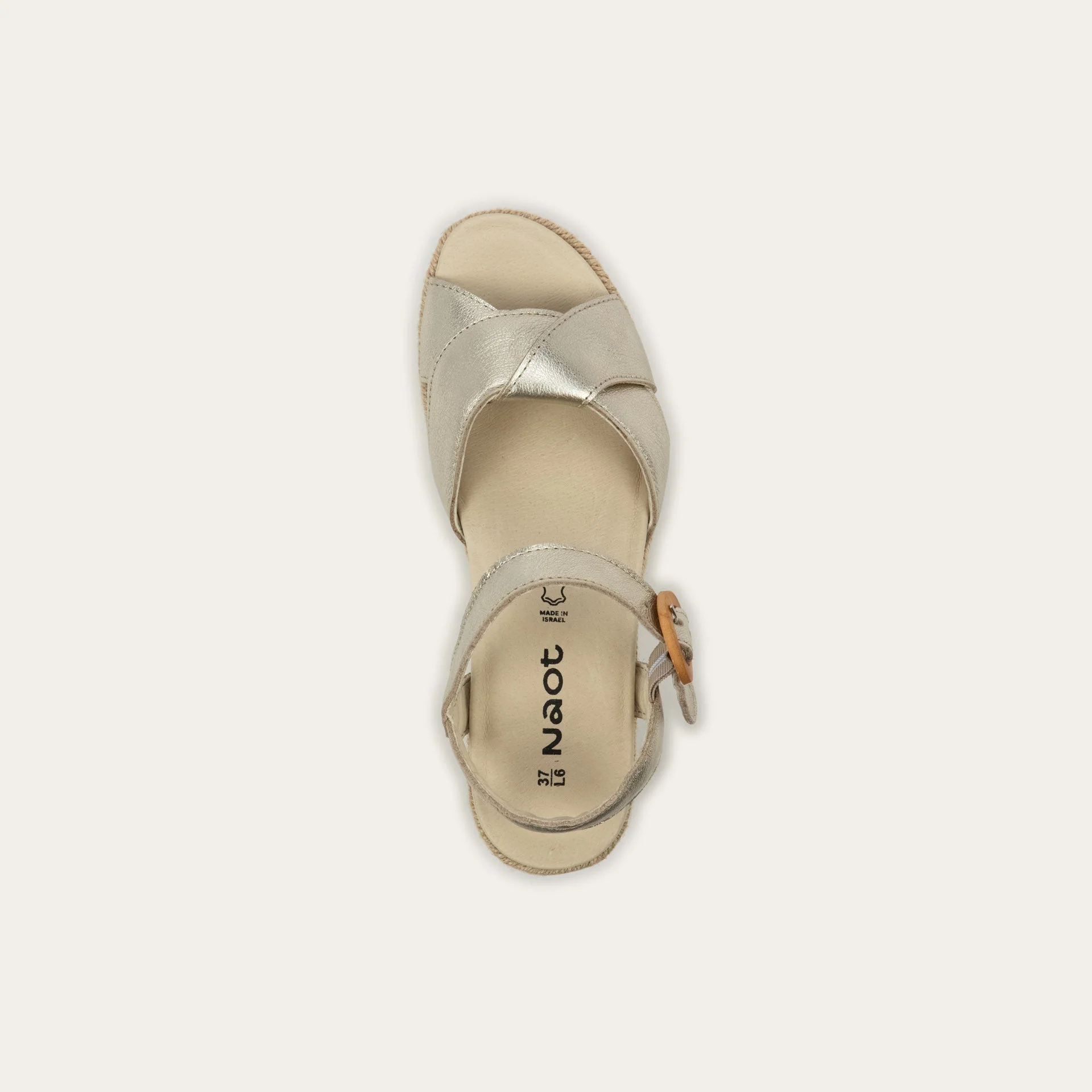 Introducing Marbella -a symbol of comfort and elegance. This sandal features padding for enhanced comfort and a distinctive wood accent buckle closure, combining luxurious aesthetics with practicality. Ideal for both casual and dressy occasions, Marbella promises style and comfort in every step, making it a must-have addition to your footwear collection. Crafted with Naot's anatomic cork and latex footbed wrapped in smooth leather, these shoes mold to the shape of your foot with wear, ensuring personalized comfort. The Costal Collection's EVA sole offers the look of a 3-inch wedge without the discomfort, providing both style and stability with every step.