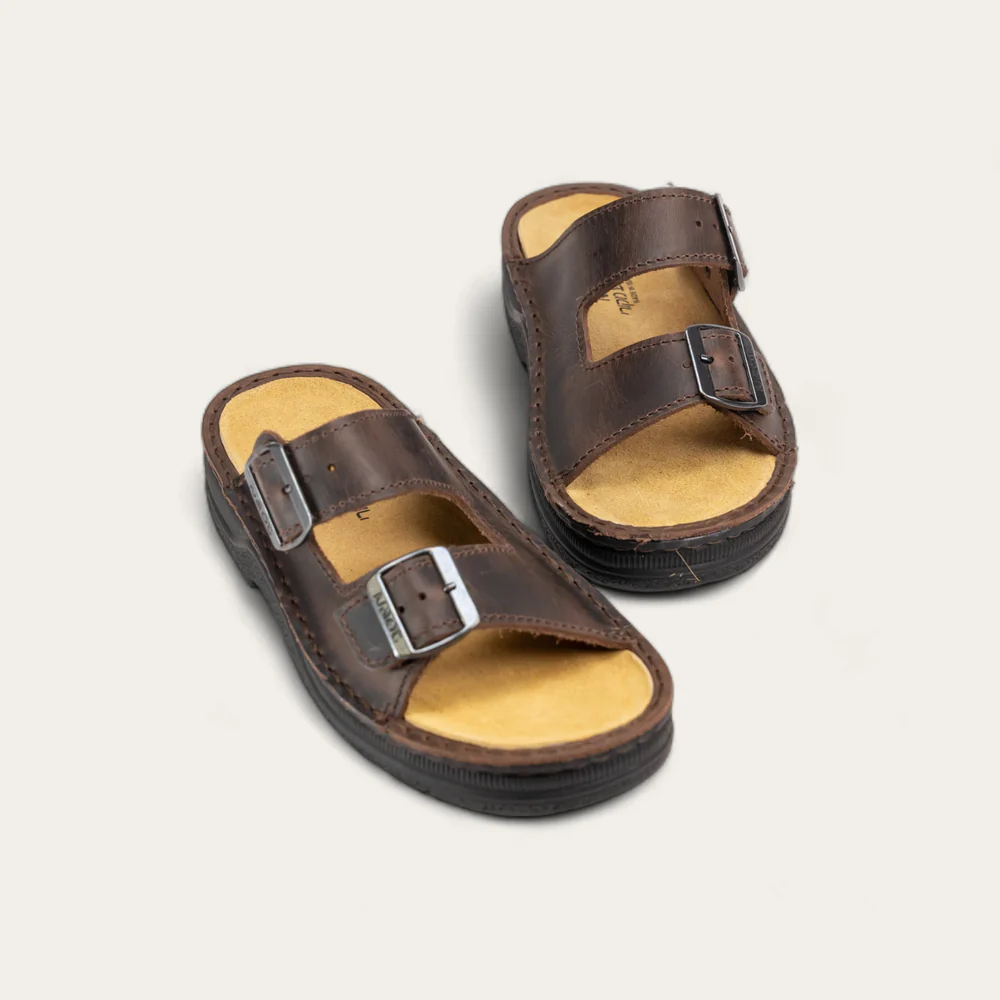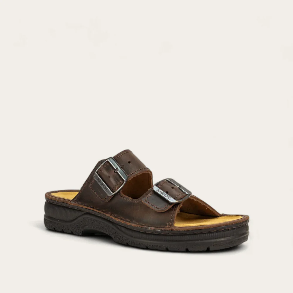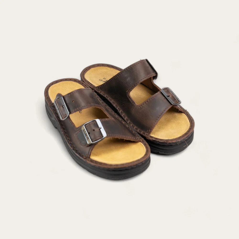 The Mikaela is a fully adjustable slide sandal with two buckle straps. Naot's removable, anatomic cork and latex footbed is wrapped in pampering suede and molds to the shape of the foot with wear. The Campus Collection features a 1.5" polyurethane sole which is extremely lightweight and durable. Our patented Naot Replacement Footbeds are also available for Mikaela.