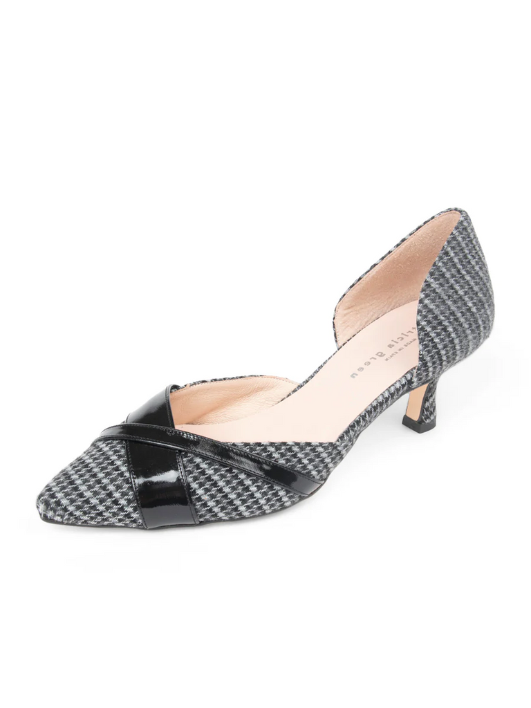 Elevate your elegance with the Patricia Green Milan D'Orsay Kitten Heel, exquisitely handcrafted in Spain by master artisans. Featuring luxurious raffia material adorned with crystal-embellished criss-cross straps, this shoe effortlessly blends sophistication and style. Designed for impeccable fit and quality, every pair is carefully crafted and stitched by hand in a family-owned factory. Perfect for weddings, events, or adding a touch of glamour to your everyday look, these heels redefine artisanal footwear.