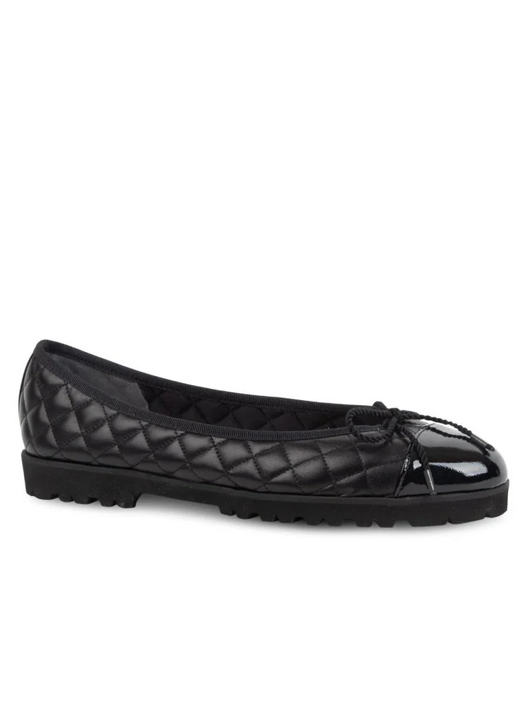 PAUL MAYER - BEST QUILTED LEATHER BALLET FLAT - SIZE 8.5 - PATENT BLACK / NAPPA BEIGE
