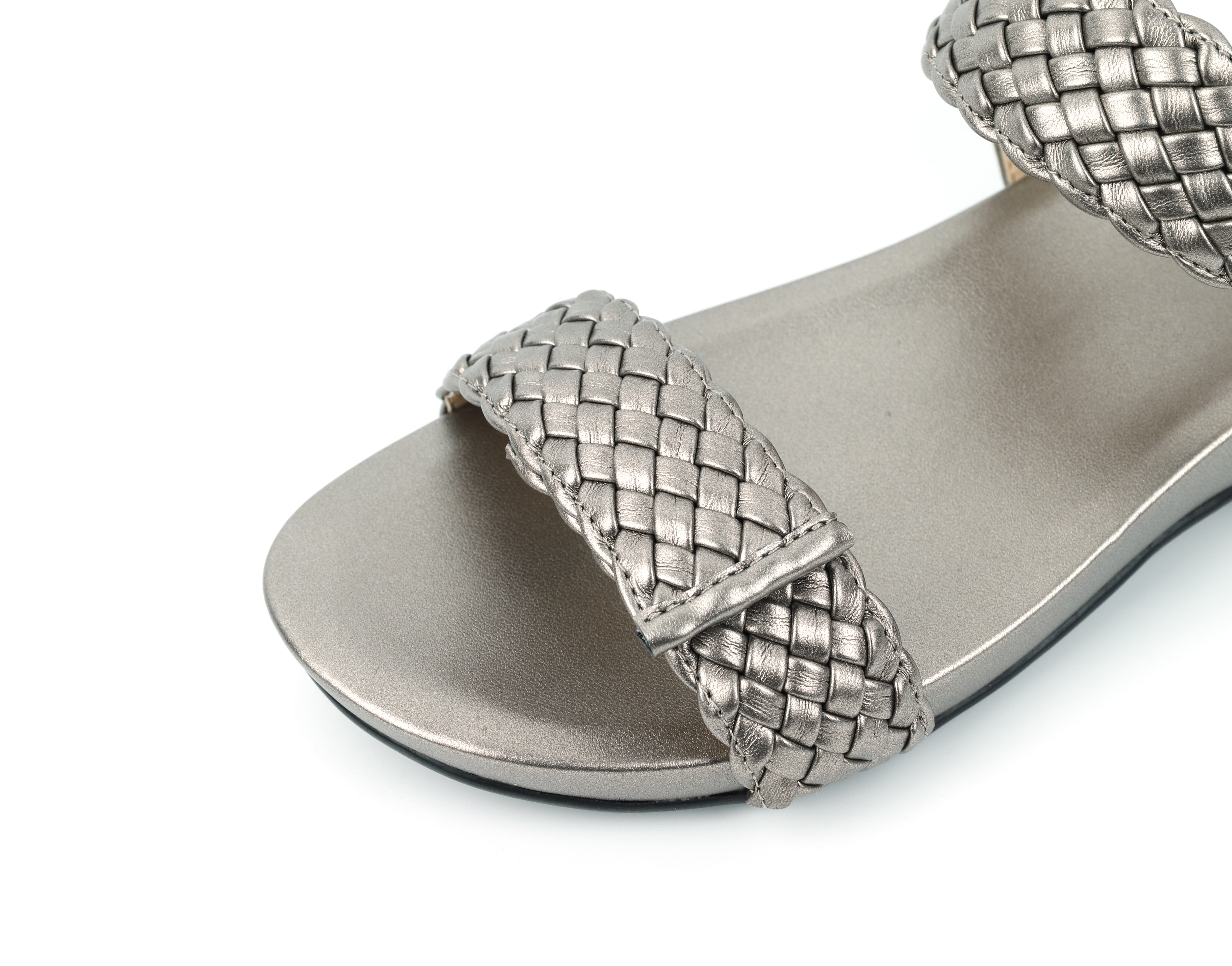 The Charlotte sandal is the ultimate choice for stylish, all-day comfort, featuring beautiful craftsmanship and a supportive design. Its wide vamp and ankle straps are crafted from a dimensional woven material, creating a rich, textural effect.