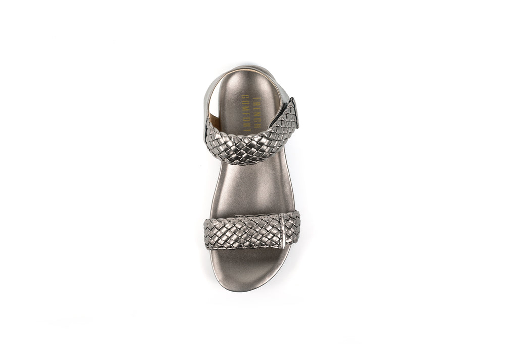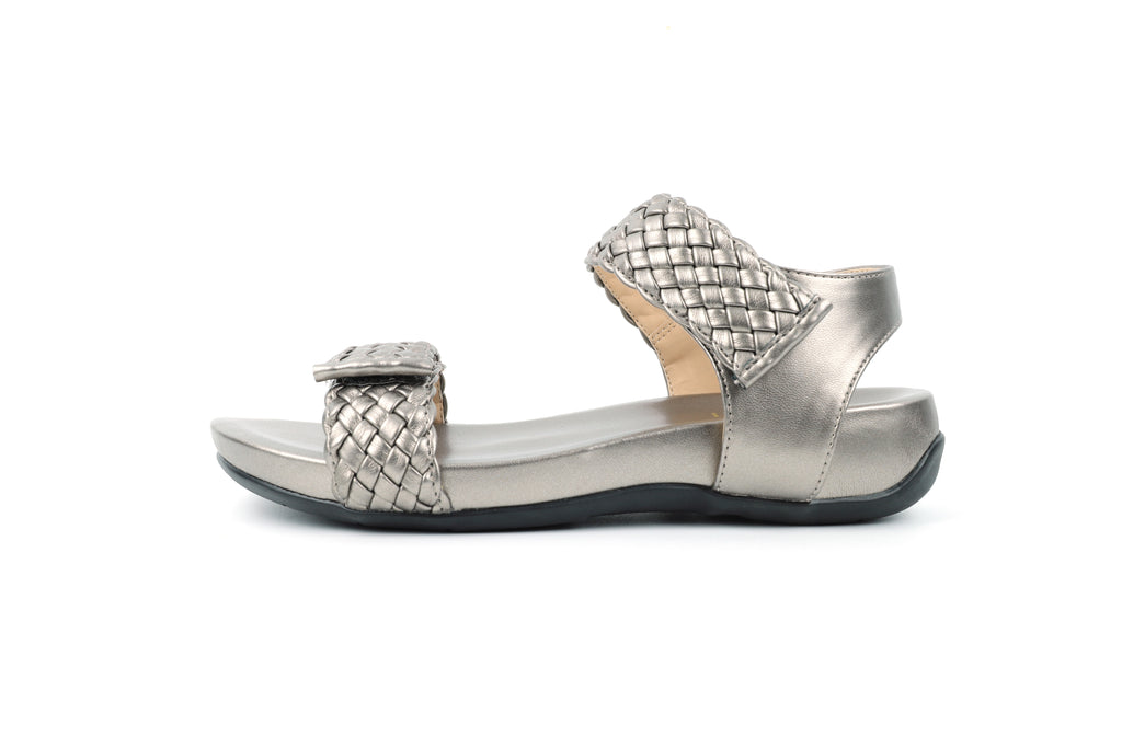 Available in a shimmering Metallic Pewter or versatile Navy and Black, the Charlotte is a refined, practical sandal. It is proof that comfort-focused footwear can be utterly sophisticated and effortlessly elegant.