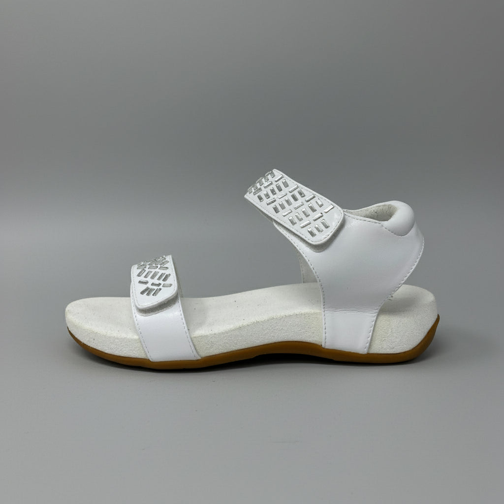 The geometric laser-cut pattern on the straps, backed with a subtle shimmer or metallic layer, catches the light beautifully, adding quiet glamour without sacrificing practicality. Paired with a supportive, contoured footbed and a flexible sole, the London is the perfect marriage of walking utility and polished warm-weather style.